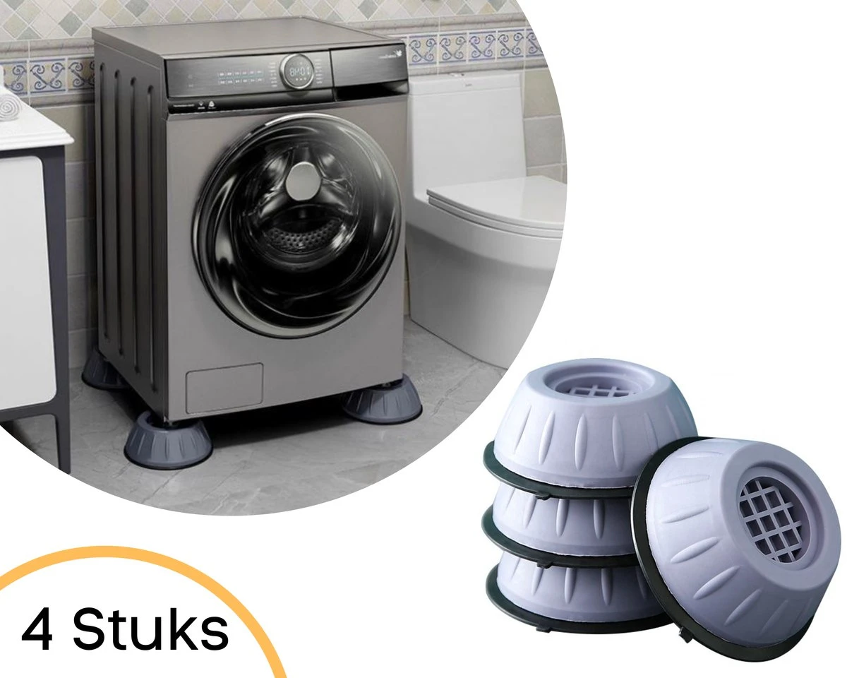 Demp geluid en trillingen van je wasmachine en droger met de Wasmachine Demper (Trillingsdemper). Elke set bevat 4 schokdempers. Het trilmat systeem hebben we uitgebreid en in de vorm van poten geplaatst. De poten hebben de beste geluidsdempende werking van alle dempers op de markt. Ze zijn extra dik en hebben een systeem ingebouwd inplaats van alleen rubber. De trillingsdempers zijn universeel en passen makkelijk onder elke wasmachine, droger of vaatwasmachine. Naast het dempen van trillingen en geluid voorkomen de trillingsdempers ook dat je wasmachine of droger schade veroorzaakt aan de ondergrond.