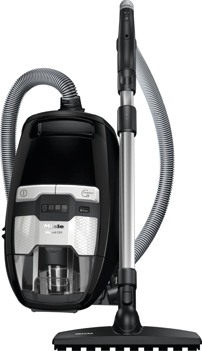 De Miele Blizzard CX1 Comfort Powerline tilt het comfortabel stofzuigen naar een hoger level. Deze Miele stofzuiger bevat een ergonomisch handvat waarmee je met alle gemak de zuigkracht aanpast. Daarnaast is deze stofzuiger geschikt voor kwetsbare vloeren. De parketborstel met zacht natuurhaar zorgt ervoor dat kwetsbare vloeren onbeschadigd blijven wanneer je stofzuigt. Ook is de parketborstel makkelijk verwisselbaar, zodat je ook niet-kwetsbare vloeren makkelijk schoon kunt maken. De bijgeleverde accessoires zitten onder de kap van de stofzuiger, zo heb je alle mondstukken van de stofzuiger ten alle tijd bij de hand. De stofzuiger heeft een A-prestatie voor stofopname op harde vloeren, wat staat voor een erg sterke zuigkracht. De Miele Blizzard CX1 Comfort Powerline heeft een extra lang snoer van 7.5 m, waardoor hij ideaal is voor grote ruimtes zonder dat je van stopcontact hoeft te wisselen.