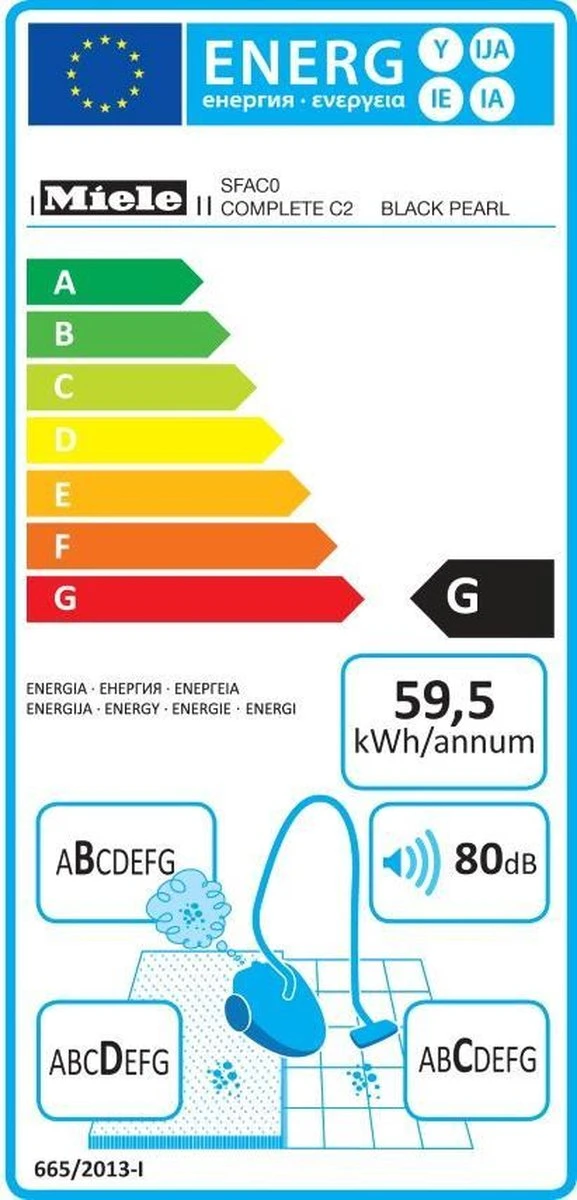 Energielabel Miele Complete C2 Black Pearl PowerLine – Stofzuiger