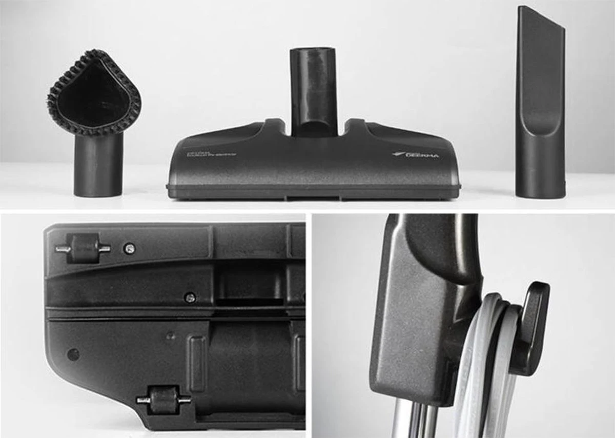In deze set vind je 3 praktische borstels, waarmee je elk hoekje grondig schoonmaakt. De Vloerborstel is fantastisch voor het reinigen van verschillende soorten oppervlakken. Het reinigt tegel- en laminaatvloeren, maar ook tapijten en vloerkleden. De spleetborstel is onder andere goed voor het reinigen van bankuitsparingen, boekenplanken en toetsenborden. Met de ronde borstel maak je gordijnen, kleding en matrassen grondig schoon. (De onderste afbeelding toont de wielen van de vloerborstel voor eenvoudig gebruik, evenals de snoerhouder van de stofzuiger)