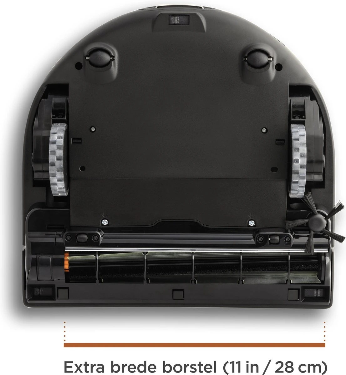 - Grote borstel en afvalbak. Enorm verschil. Reinig met een spiraalvormige combinatieborstel die tot 70% groter is dan die van ronde robots. Werkt op elk oppervlak – hardhout, tapijt of tegels – en is dus geschikt voor elk huis. De grote afvalbak van de Neato van 0,7 liter hoeft minder vaak te worden geleegd.