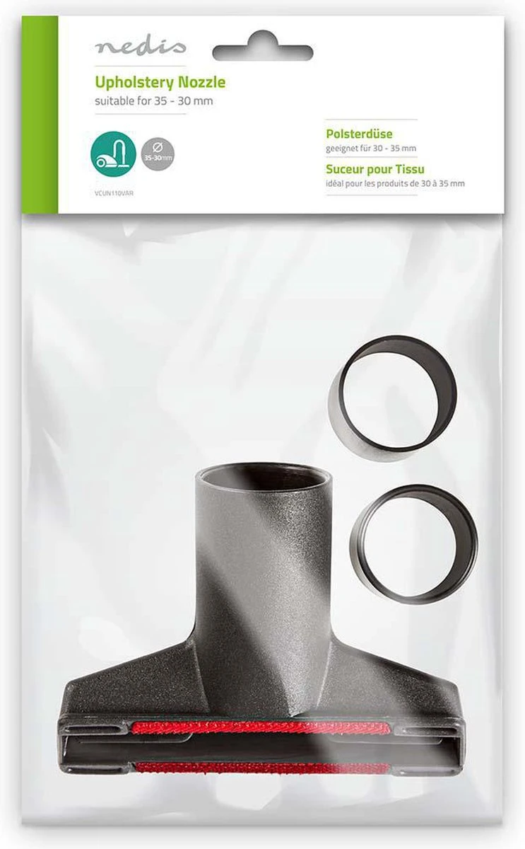 Deze bekleding mondstuk met een diameter van 35 – 30 mm is perfect voor het reinigen van bekleding, matrassen, kussens, gordijnen, dekt etc. Dit mondstuk is geschikt voor huishoudelijke stofzuigers en kan gemakkelijk worden aangesloten met behulp van de meegeleverde aanpassingsringen.