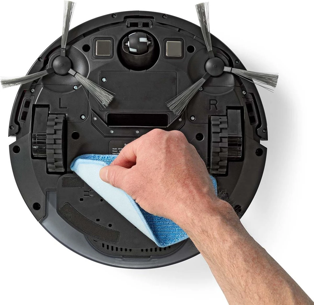De twee borstels aan de rand vegen langs de muren en andere voorwerpen om stof en vuil te verzamelen en alles naar het midden te leiden waar het wordt opgezogen, dankzij de 1400 Pa sterke borstelloze motor. De sensoren detecteren muren, objecten en trappen of afstapjes om zo botsingen en vallen te voorkomen. Als hij klaar is, of als de batterij leeg raakt, gaat hij automatisch terug naar de oplader om zichzelf op te laden, zodat hij altijd klaar is voor de volgende taak. De robotreiniger heeft een HEPA-filter dat alle fijne deeltjes uit de lucht verwijdert, wat betekent dat je minder last hebt van allergieën. De krachtige lithium-ionbatterij betekent dat de robotreiniger 90 minuten ononderbroken kan werken en snel weer is opgeladen.