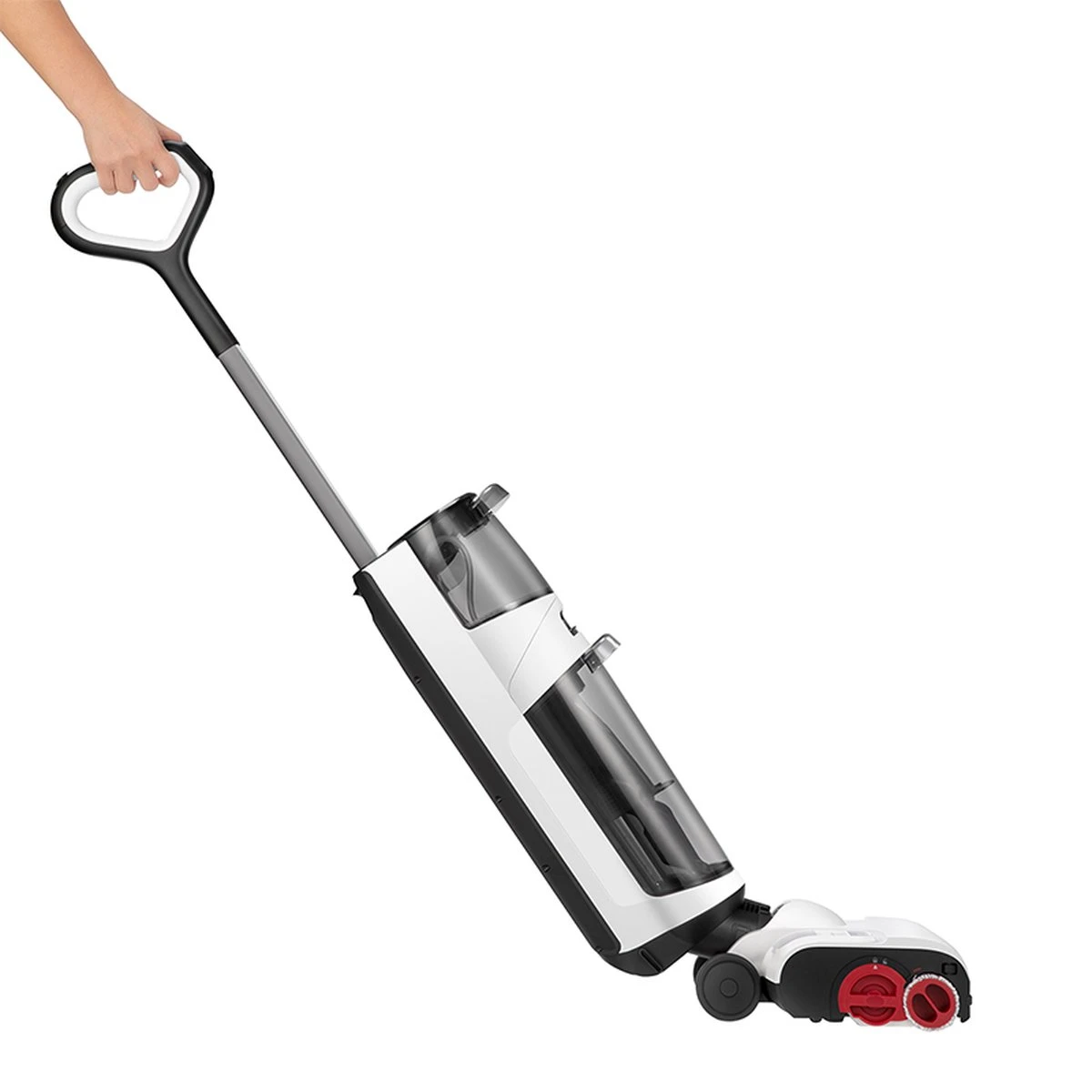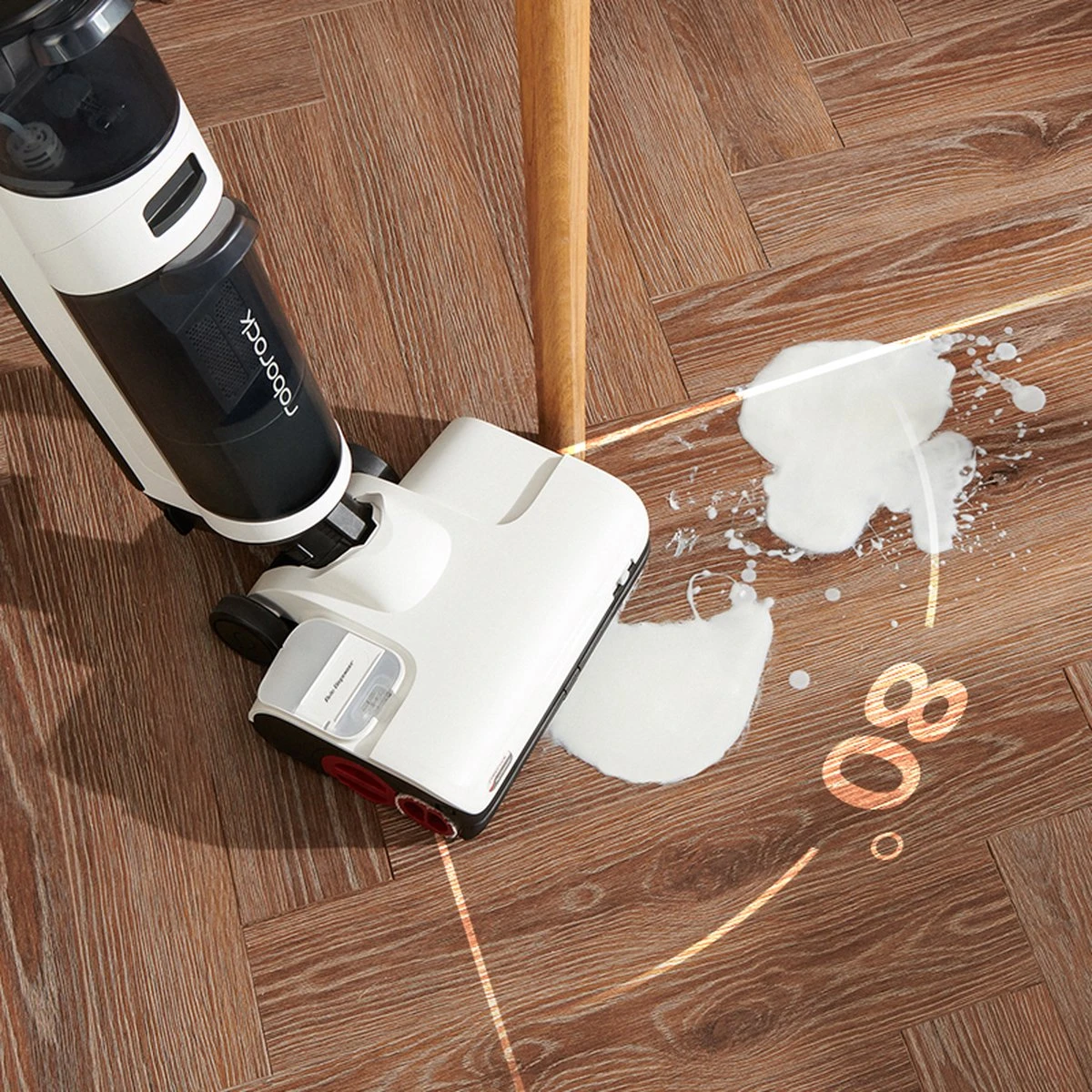 【Verbeterde reiniging van rand tot rand】Met 1 lange borstel en 2 achterborstels is de reinigingsafstand langs de muur minder dan 1 mm, waardoor het vuil langs de randen volledig wordt verwijderd. De kop draait 180° om gemakkelijk rond tafel- of stoelpoten te reinigen. Hij kan moeiteloos heen en weer worden geschoven voor een betere manoeuvreerbaarheid.