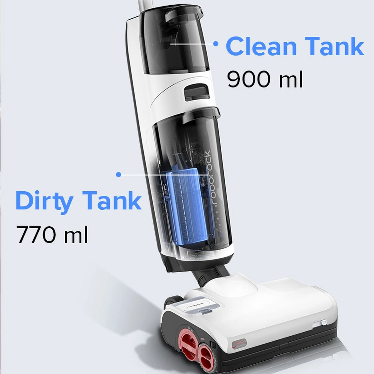 【Auto Clean en Auto Dispenser】De natte en droge stofzuiger reinigt automatisch bij elke omwenteling. De rolborstel draait afwisselend vooruit en achteruit, en met de zuigmond wordt herhaaldelijk geborsteld en geschraapt om het vuil grondig te reinigen. De reinigingsoplossing wordt automatisch in de slang gepompt en gelijkmatig op de rol gespoten. Hij past zich automatisch aan de vlekken op de vloer aan voor een perfecte reiniging. 1 kleine cartridge met reinigingsvloeistof gaat tot 600 minuten mee.