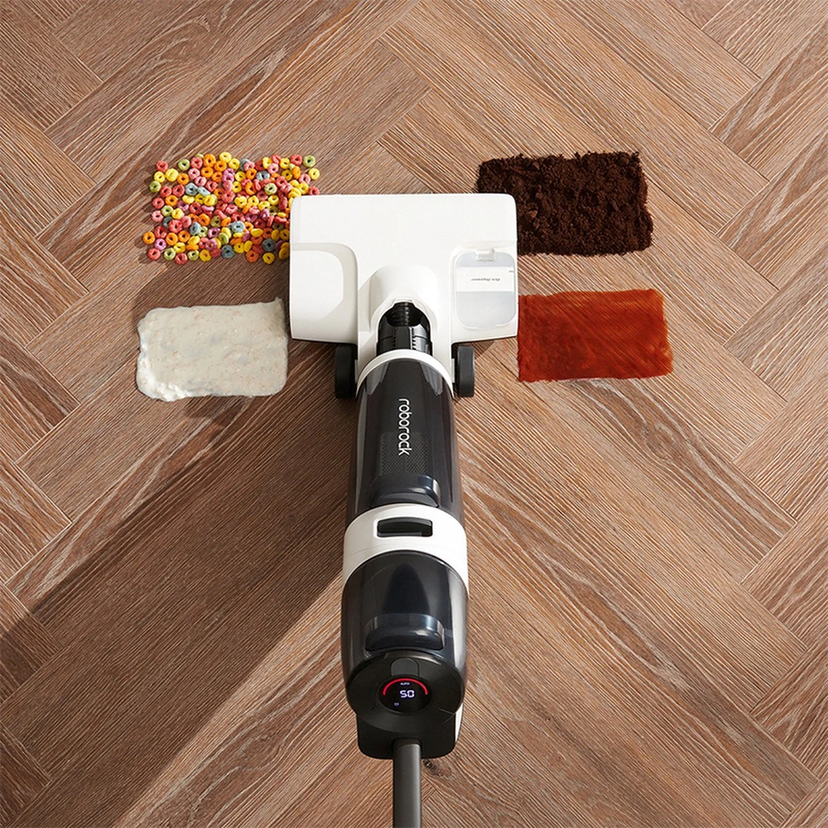 【Intelligente Detectie】Infraroodsensor detecteert vuil op de borstel en past automatisch de zuigkracht en het watervolume aan. Steun stem prompt function.4 het schoonmaken wijzen, ECO: milieubescherming en energie – besparing. Auto: Past automatisch de waterstroom en de zuigkracht aan volgens de hoeveelheid vuil.Max: Verwijdert gemakkelijker hardnekkige vlekken en ultrafijn stof. Vloerdroog: droogt gemorste vloeistof snel.