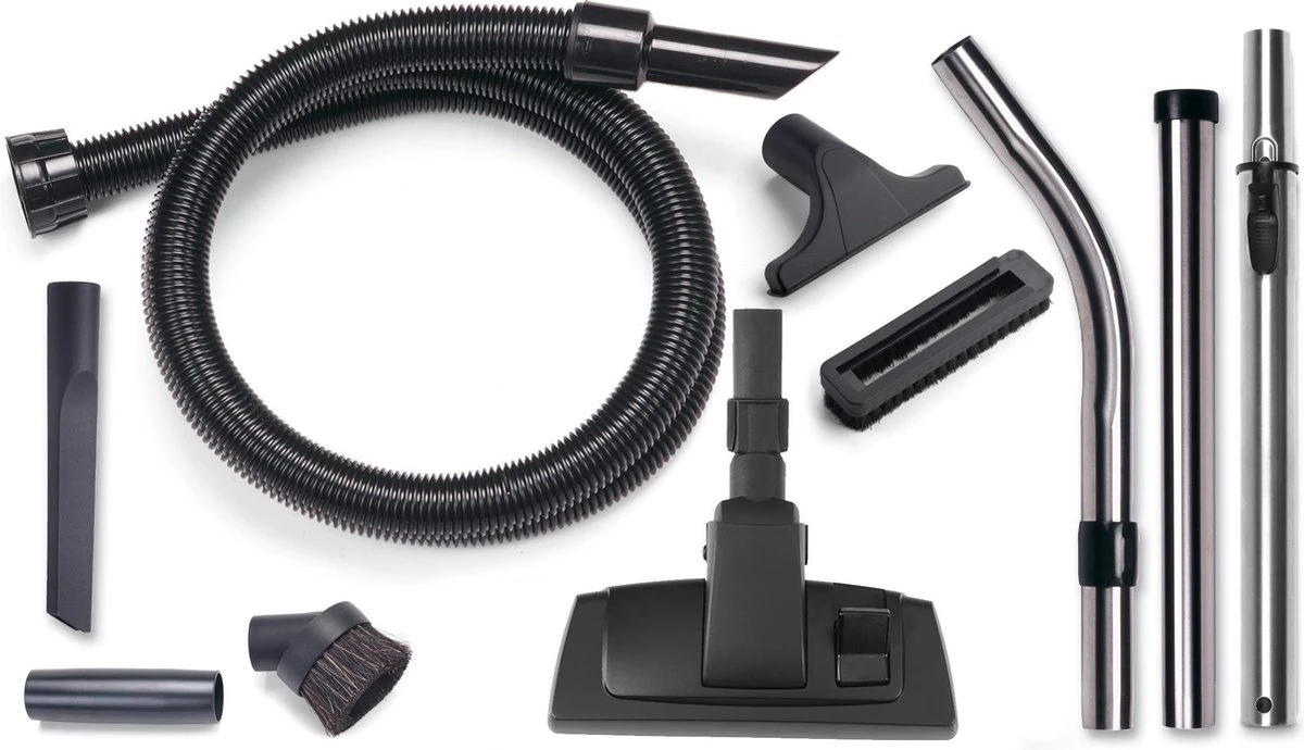 Complete accessoireskit-AS1 bestaat uit: Telescopische zuigbuis, 3-delig RVS, Hi-Pro combizuigmond 290mm met comfortwiel, 2.4m FloMax zuigslang en 5-delige accessoirekit