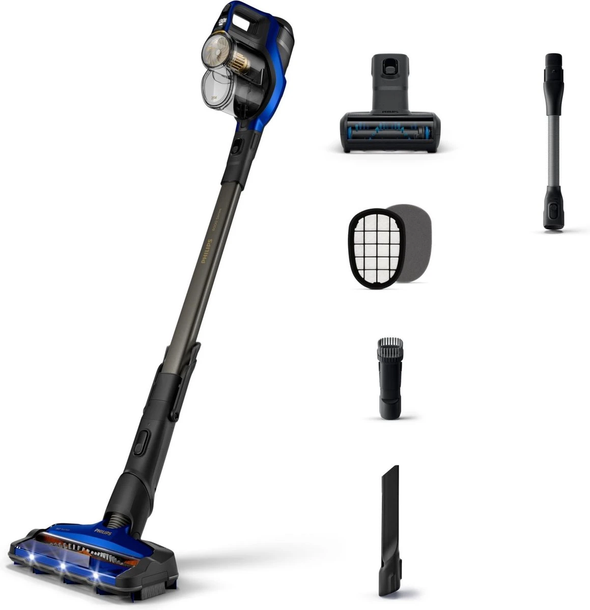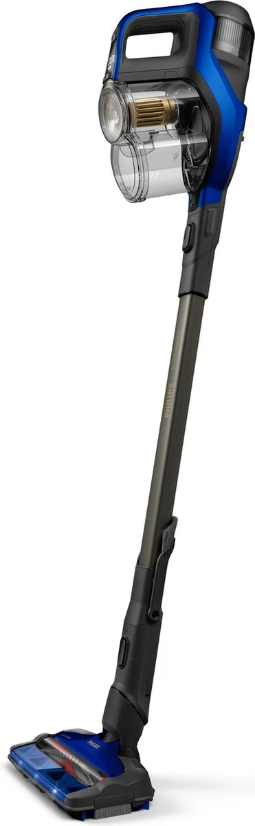 De snelste snoerloze steelstofzuiger met uniek 360 graden mondstuk met LED-verlichting. Met de Philips series 8000 SpeedPro Max XC8049/01 steelstofzuiger haal je de snelste manier van snoerloos schoonmaken in huis. Met iedere beweging neemt het 360 graden mondstuk stof en vuil op, zelfs achterwaarts en in hoeken. Het unieke 360 graden mondstuk is geschikt voor alle typen vloeren, zodat wisselen niet nodig is. Gebruik de kleine gemotoriseerde turboborstel voor moeilijk te reinigen oppervlakken en de geïntegreerde borstel op de steel voor nauwe kieren. Met de krachtige PowerBlade-motor en de hoogwaardige 25.2V Li-ion batterij kun je tot wel 70 minuten krachtig en zonder onderbrekingen je hele huis schoonmaken.