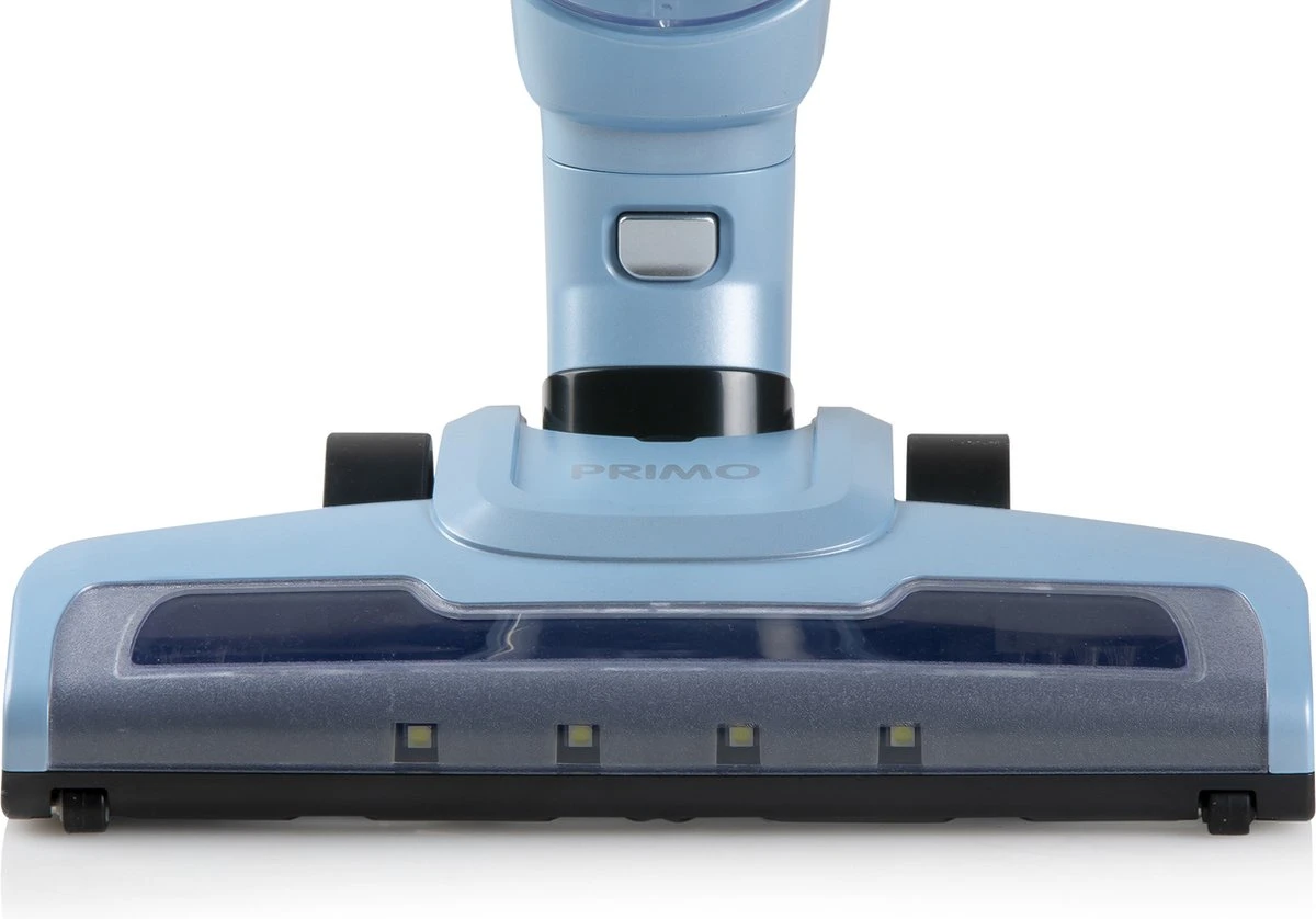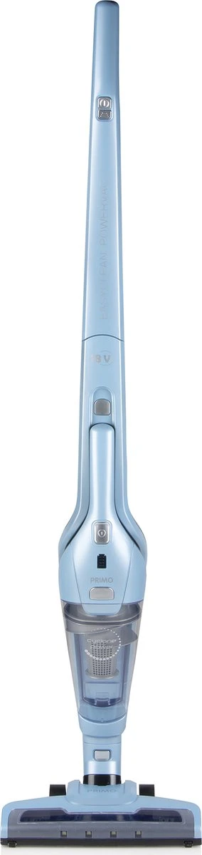De PRIMO PR507SV 2-in-1 steelstofzuiger zonder zak / kruimelzuiger is je ideale hulpje om snel wat op te zuigen. Zo blijft je vloer schoon zonder direct de grote bedrade stofzuiger te moeten pakken. Ook heeft de PR507SV een flexibele borstelkop om gemakkelijk in ieder hoekje of onder banken te komen. De krachtige 18 V Lithium-Ion accu geeft je maar liefst 40 minuten kracht op de ECO stand als kruimelzuiger. Is de zuigwerk toch hardnekkiger dan schakel je over naar de TURBO stand met 20 minuten zuigkracht via de borstelkop. De Flexibele borstelkop met LED-verlichting is geschikt voor alle vloertypen. Doordat de PR507SV Steelstofzuiger draadloos is, heb je complete bewegingsvrijheid. Als je de steel verwijderd verander je de Handstofzuiger in een kruimelzuiger. De PR507SV komt in de kleur Blauw.