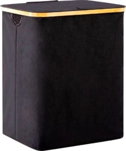 Opvouwbare Wasmand Met Deksel – Wassorteerder – Wasmanden – Wasmand Bamboe – Zwart – 60Liter