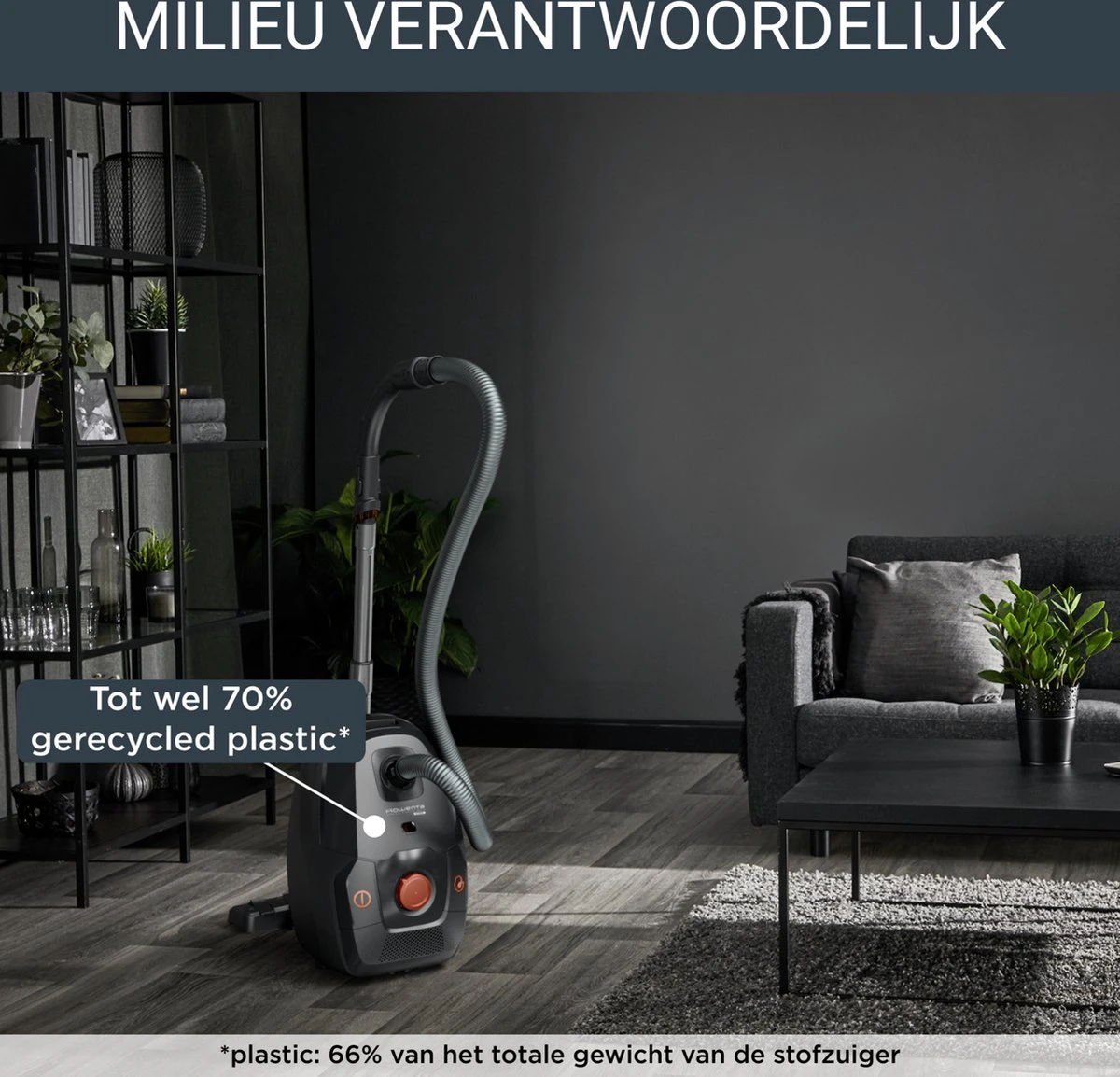 De stille, milieuvriendelijke stofzuiger gemaakt voor een grondige reiniging Ontdek de Green Force Max Silence, een krachtige stofzuiger die een 900 W motor voor een laag verbruik* en perfecte reinigingsresultaten zorgt op alle oppervlakken. Deze stofzuiger is niet alleen superstil – met 65 dB(A) -, maar belooft ook een gezondere en hygiënischere omgeving dankzij HEPA-klasse filtratie. Dit alles in een apparaat dat tot wel 70% is gemaakt van gerecycled plastic** met een ecologisch ontworpen verpakking.