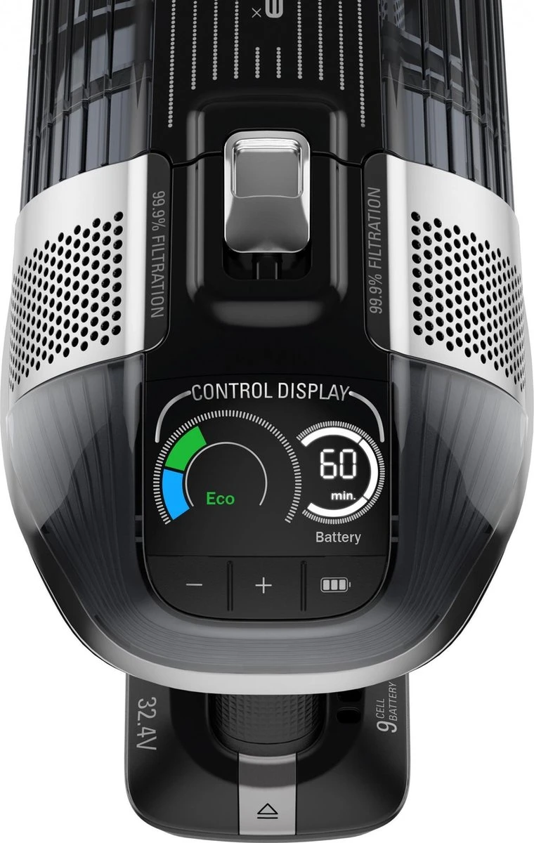- Beschikt over een display om de resterende autonomie per minuut te zien en de zuigkracht te bedienen, met 4 verschillende standen plus een boost trigger.
