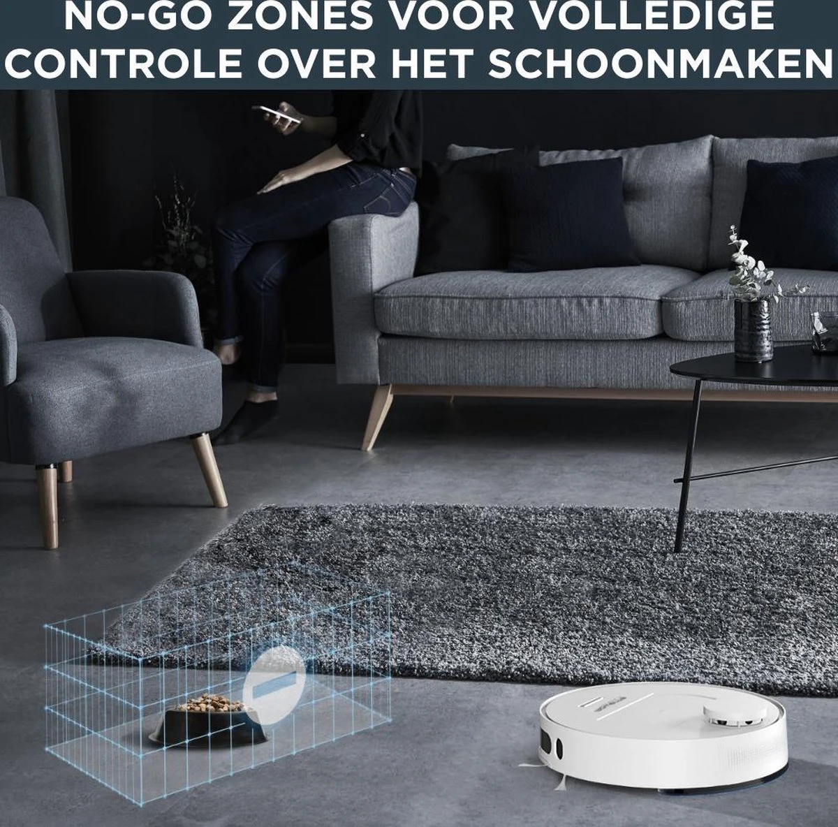 Een gratis bijbehorende app (iOS en Android) biedt de mogelijkheid voor het progrmmeren van schema’s en het personaliseren van plattegronden en meer. Tevens compatibel met stemassistentie zoals Amazon’s Alexa en Google Assistant voor schoonmaken met absoluut gemak.