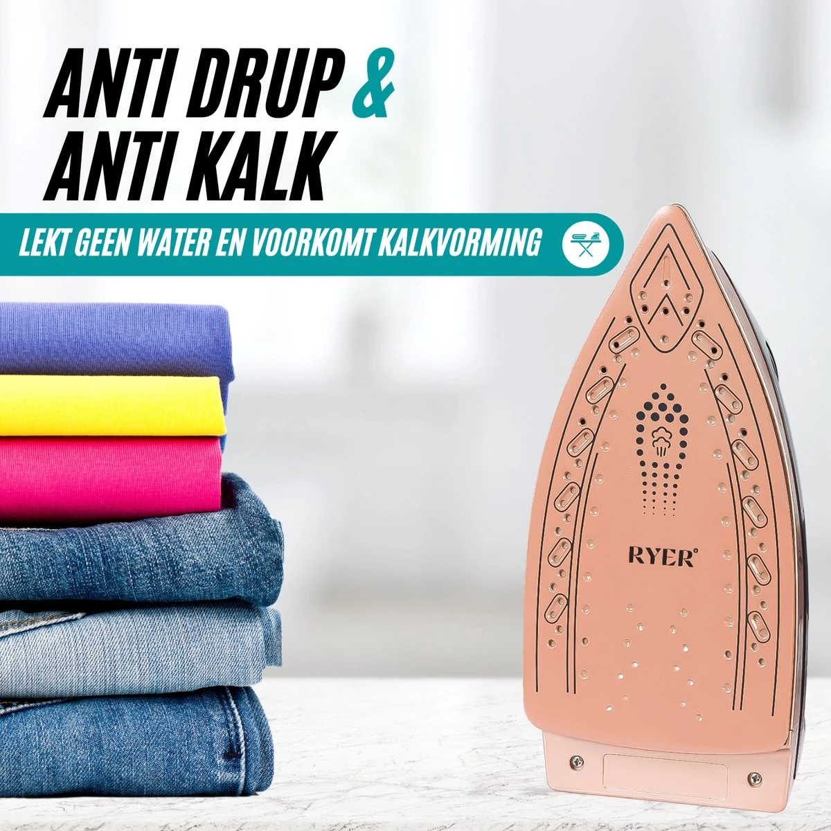 Natte plekken op kleding door lekkend water of het slijten van het strijkijzer door de vorming van kalk zijn bij Ryer geen dingen waar je rekening mee hoeft te houden. Het stoomstrijkijzer lekt namelijk geen water en voorkomt kalkvorming. De anti-drup en anti-kalk eigenschappen van de Ryer zorgt voor een langere levensduur van het ijzer.