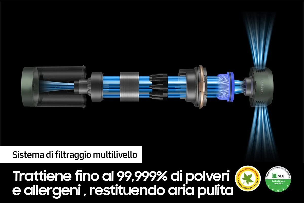 Profiteer van het gemak waarmee de stofzuiger geleegd en opgeladen wordt. Het All-in-one Clean Station™ leegt het stofreservoir effectief met behulp van “Air Pulse”-technologie, terwijl de batterij wordt opgeladen. 99,999% van de fijne stofdeeltjes⁴ worden opgevangen en de antibacteriële stofzak voorkomt 99,9% van de bacteriële groei⁵.