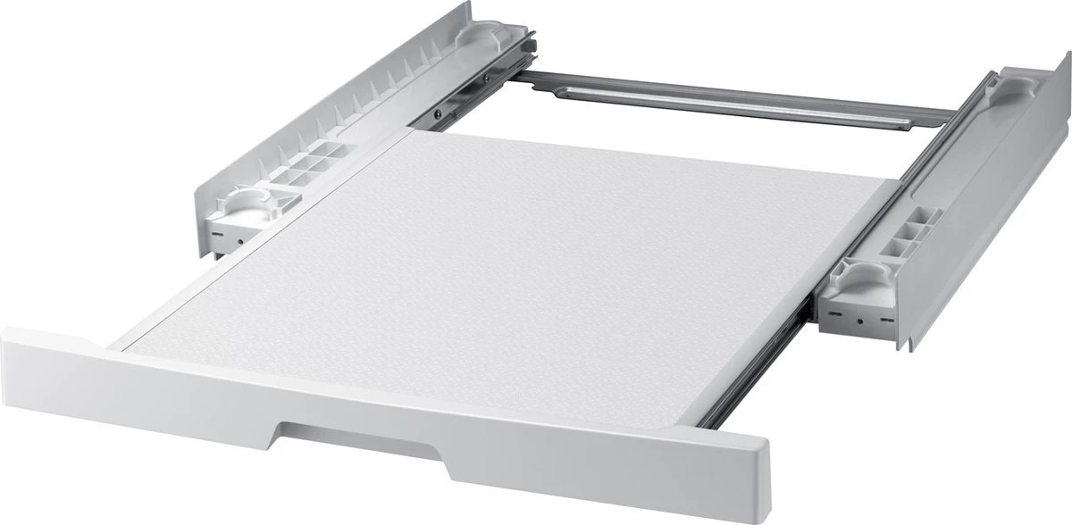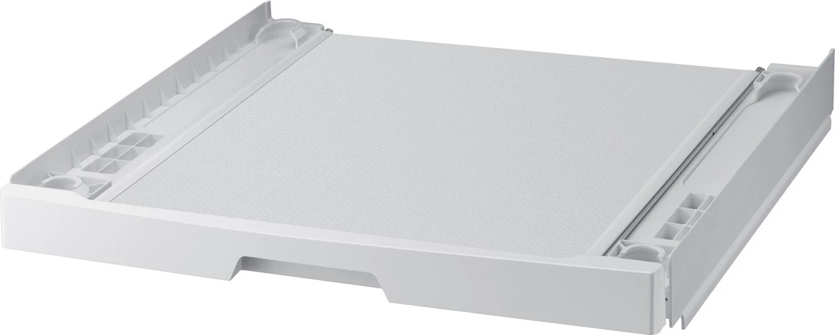 Deze Samsung SKK-UDW stapelkit is te gebruiken om Samsung warmtepompdrogers en wasmachines te stapelen. Op deze manier kan je de machines op elkaar zetten, waardoor ze beiden worden ondersteunt door de stapelkit. Deze stapelkit heeft ook nog een uittrekbare lade, waar je wasgoed of een wasmand op kan zetten voor meer gemak.