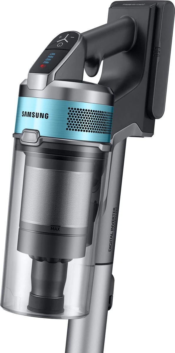 In deze steelstofzuiger van Samsung bevindt zich een Digital Inverter motor. Dankzij deze motor beschikt de steelstofzuiger over een zuigkracht van 200 W, waardoor je alles binnen een paar seconden opzuigt. Het zorgt voor een versnelde luchtstroom en draait zelfs sneller dan een formule1-auto.