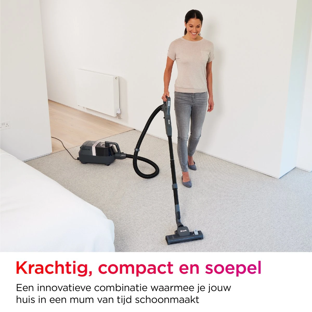 De Shark CV100EUT Stofzuiger zonder zak combineert kracht, compactheid en soepelheid in één. De innovatieve combinatie van deze drie elementen zorgt ervoor dat je jouw hele huis zo snel mogelijk en op een uiterst comfortabele manier schoon kunt maken. Deze lichtgewicht stofzuiger beweeg je gemakkelijk over alle vloeren heen, en gebruik je zelfs voor moeilijk bereikbare of moeilijk schoon te maken plaatsen, zoals hoge meubels, bekleding, de trap of nauwe spleten. Deze Shark cylinderstofzuiger is daarom de ideale toevoeging aan ieder huishouden!