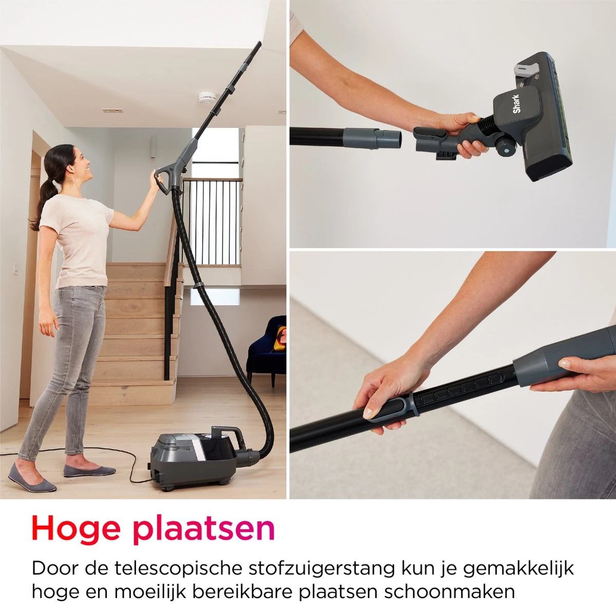 Ervaar de meest comfortabele beweging met deze Shark stofzuiger. 9 meter lang is het snoer waarover de stofzuiger beschikt, wat je enorm veel bewegingsruimte geeft, en waarmee je een hele kamer kunt stofzuigen zonder de stekker te verplaatsen. Met zijn vier wieltjes die 360 graden kunnen draaien beweegt de stofzuiger soepel over de vloer. Ook zorgt het lichte gewicht van de stofzuiger ervoor dat deze gemakkelijk voort te bewegen of op te tillen is, waardoor je comfortabel van kamer naar kamer kunt bewegen. Ondanks zijn lichte gewicht kan de stofzuiger stevig rechtop staan. Dit is enorm handig tijdens het schoonmaken van de trap, zodat je deze niet op hoeft te blijven tillen, en het opbergen van de stofzuiger, waarbij deze minder ruimte in zal nemen.