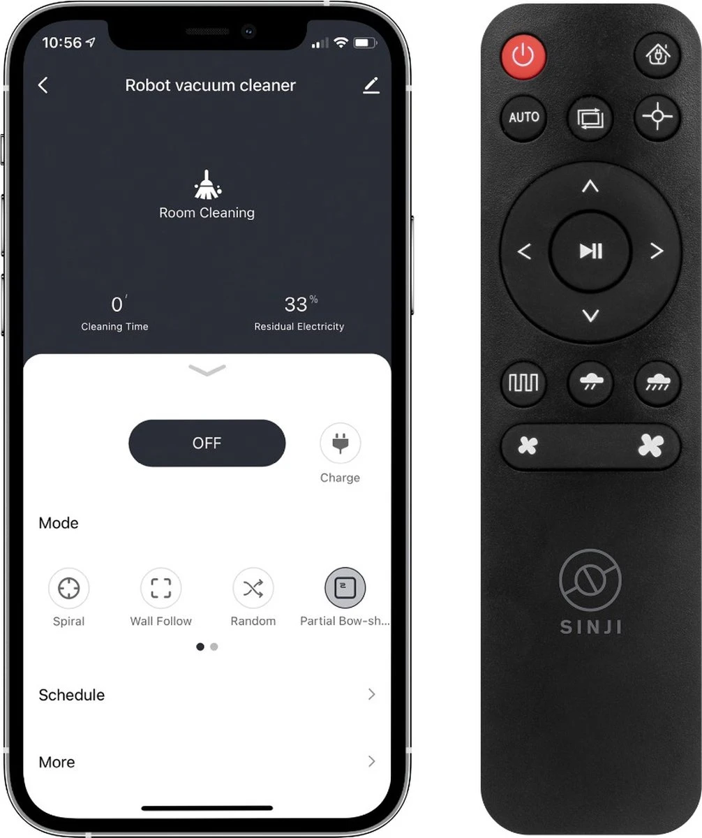 De slimme robotstofzuiger bedien je via de Tuya/Smart Life app (beschikbaar voor iOS en Android) of met de afstandsbediening. In de app kan je eenvoudig schoonmaakschema’s instellen zodat de stofzuiger automatisch aan de slag gaat met schoonmaken.