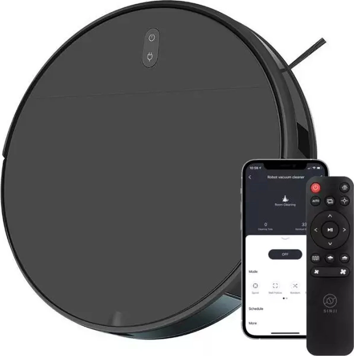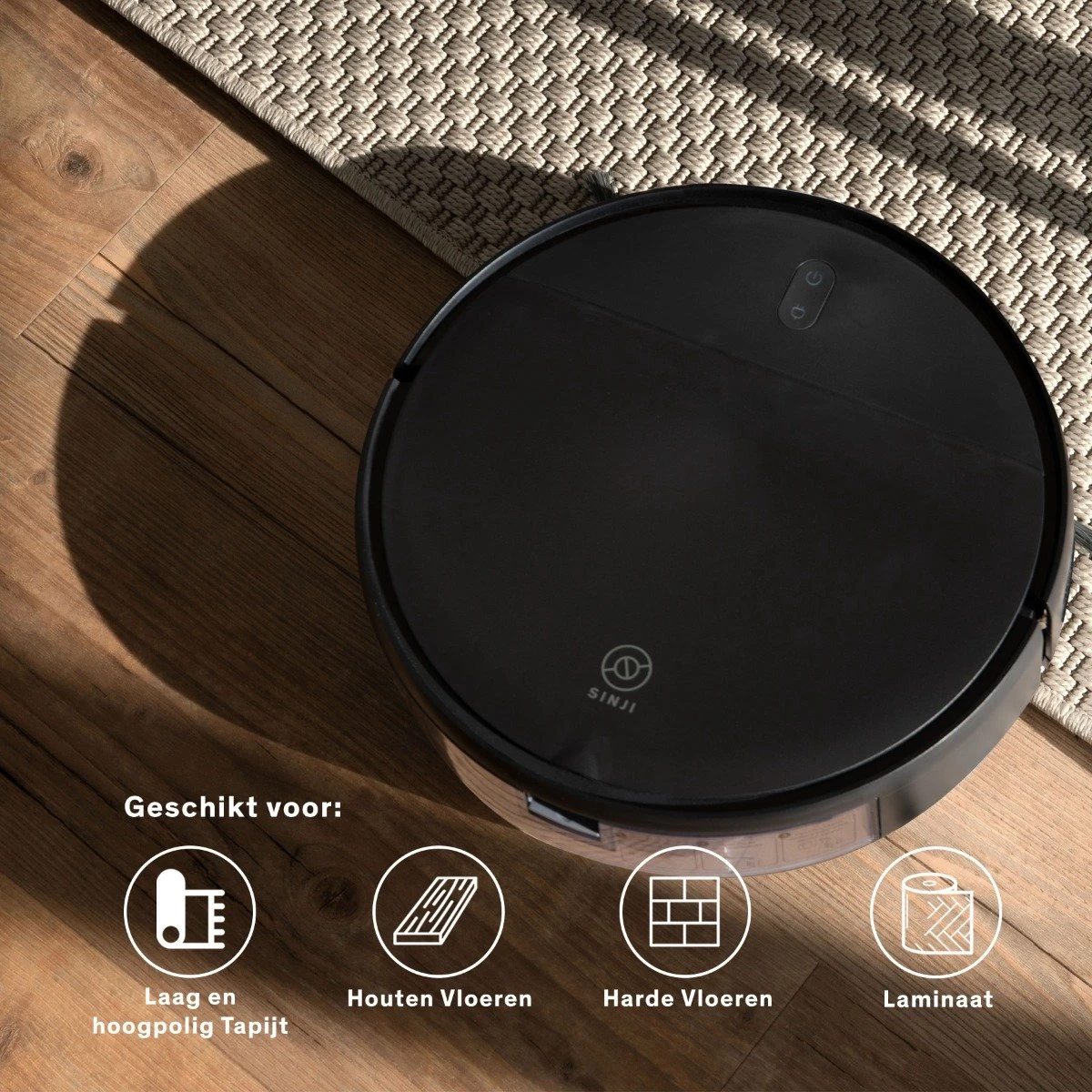 Met de Sinji Smart Robot Stofzuiger is je huis automatisch altijd schoon zonder dat je er zelf wat voor moet doen. Deze slimme robotstofzuiger heeft een zuigkracht van maximaal 1000Pa in de turbo modus, waardoor hij bijzonder makkelijk al het vuil opzuigt. Met de adaptieve navigatie sensoren vindt het apparaat zelfstandig zijn weg door de ruimte. Met de ingebouwde stof en dweilfunctie wordt de vloer niet alleen stofvrij gehouden, maar ook gelijk gedweild. Daarnaast heeft de robotstofzuiger heeft een 230ml ingebouwde watertank en een 200ml stofopvang. De stofzuiger bedien je gemakkelijk via de app, afstandsbediening of spraakbesturing.