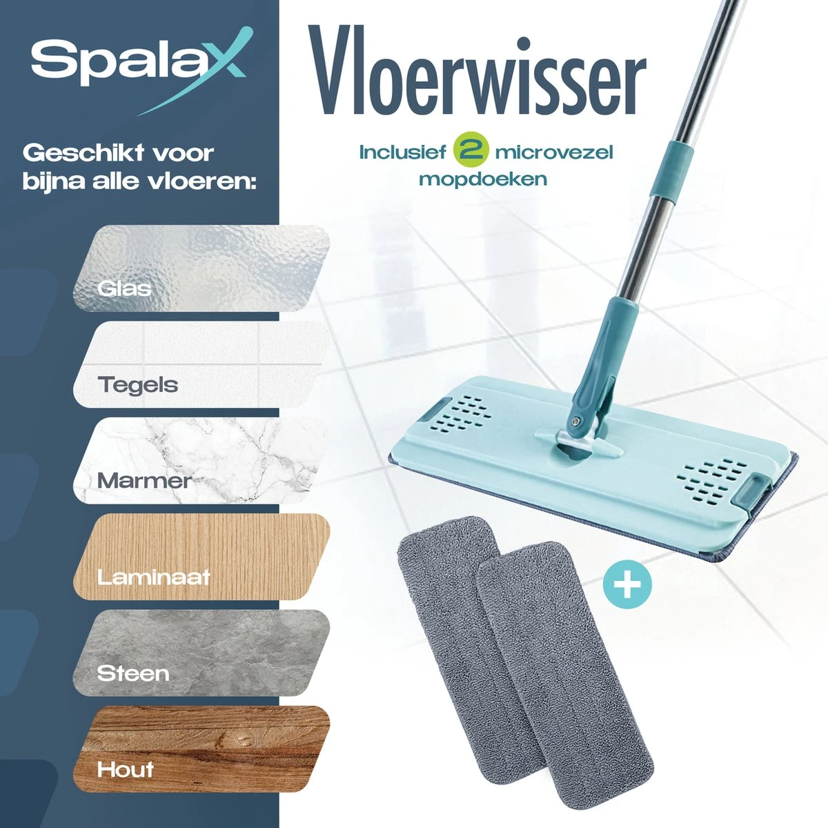 Geniet van de schoonste vloeren met de sterk absorberende Spalax microvezel dweil. Gebruik de ultralichte vloermop om de vloer droog of nat te dweilen. De 360° roterende mopkop en de verstelbare dweilstok stellen je in staat moeiteloos alle plekken te bereiken.