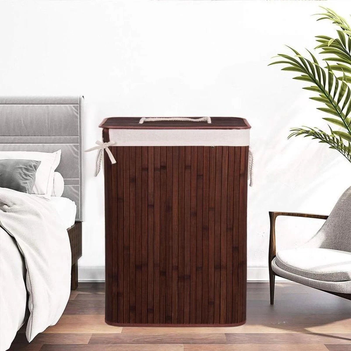 - Stevige, maar lichte constructie:De wasmand is gemaakt uit natuurlijk bamboe met ijzeren verstevigingsdraad.