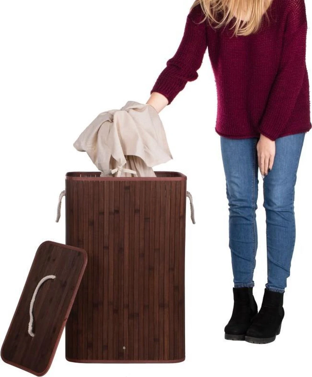 - Natuurlijk elegante look: Door het bamboe hout heeft de wasmand een zachte, natuurlijke uitstraling. Het deksel laat toe om de wasmand gesloten te houden.