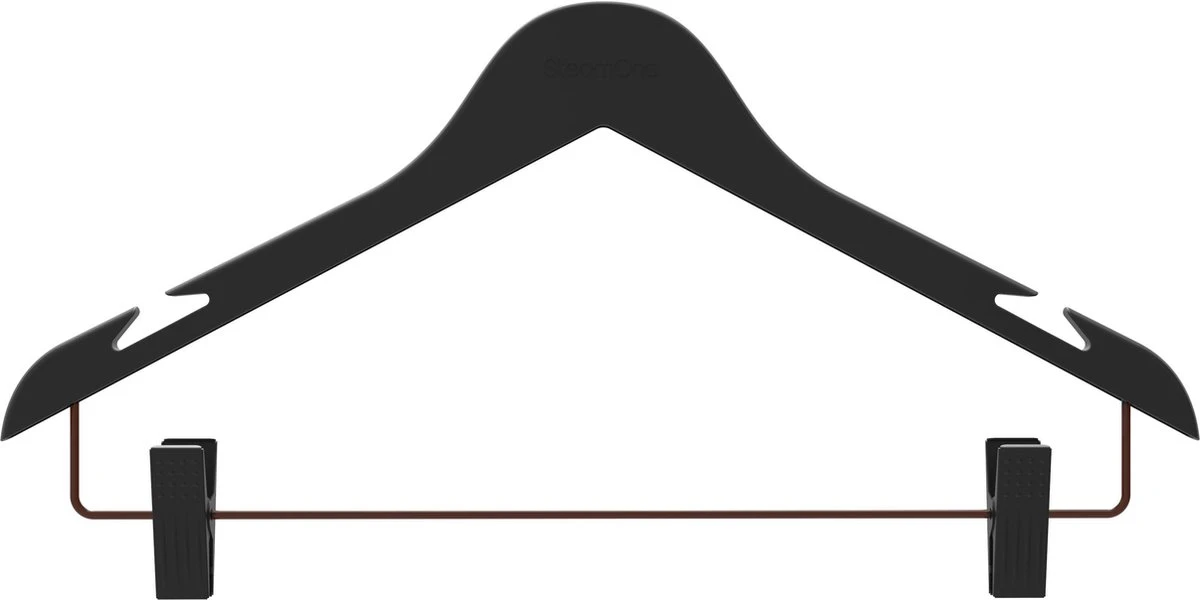 De Minilys Plus Black wordt geleverd met een kledinghanger waar je je kleding gemakkelijk aan kunt hangen voordat je begint met stomen.