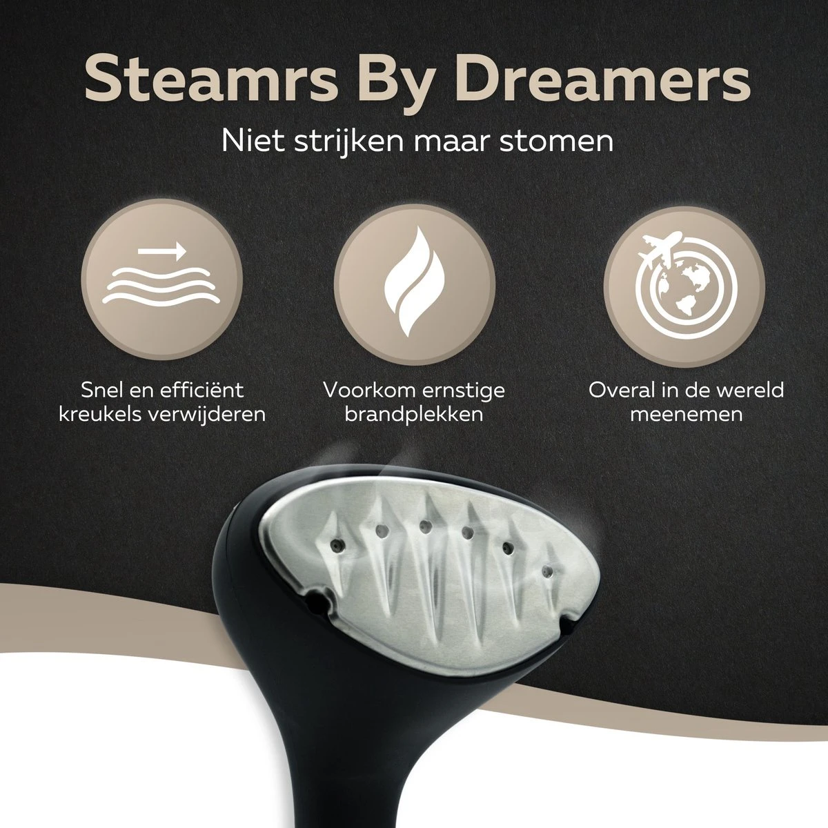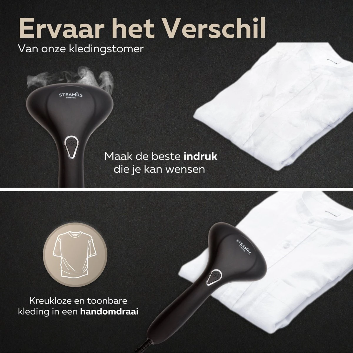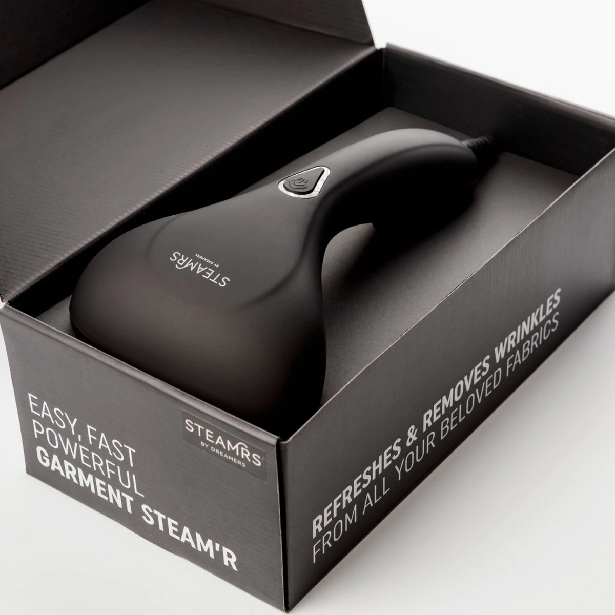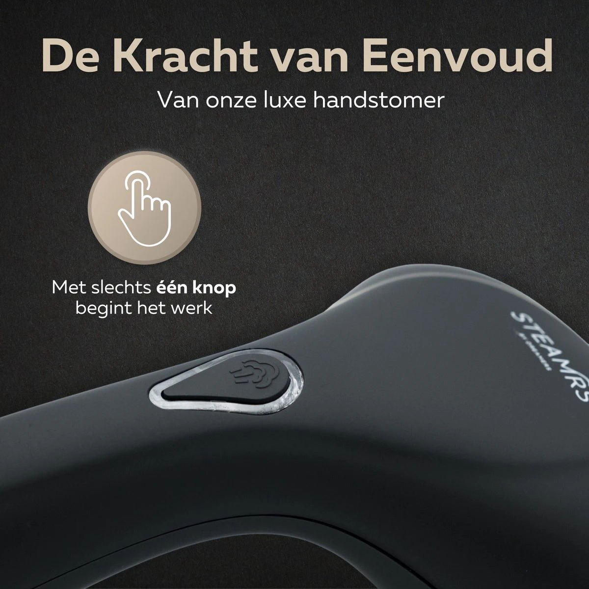 Stoom al je favoriete stoffen en kleding in seconden veilig hygiënisch en kreukvrij met deze stijlvolle, krachtige handstomer. Deze STEAM’R is een verademing en must-have voor in je huishouden en je drukke leven. Het chique mat-zwarte uiterlijk geeft de STEAM’R een premium gevoel. De roestvrijstale stoomkop is speciaal ontworpen om stoom gelijkmatig over textiel te verspreiden, zodat alle vouwen in één beweging glad gestoomd worden. Daarnaast laat je kleuren van textiel herleven en is het minder schadelijk dan gebruik van een strijkijzer.