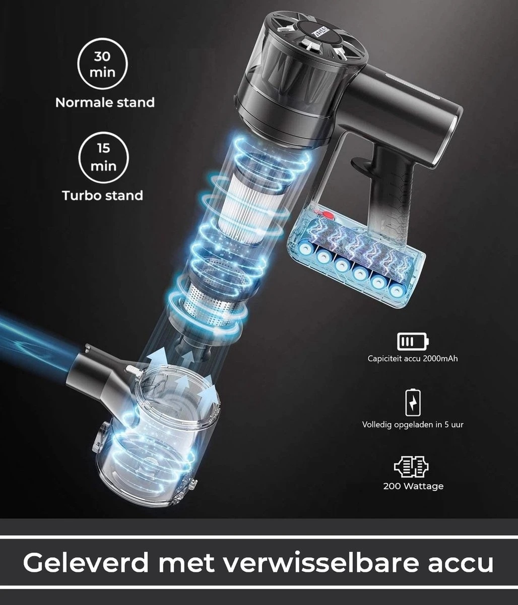 Even snel je kamer schoonmaken zonder gedoe met kabels? Met de Zedar S600 steelstofzuiger kun je met gemak 30 minuten ongestoord doorgaan! Zelfs de moeilijk bereikbare plekken zijn eenvoudig schoon te houden met de verschillende bijgeleverde opzetstukken. Daarnaast heeft de steelstofzuiger een opvangbak van maarliefst één liter, genoeg om elke klus te klaren.