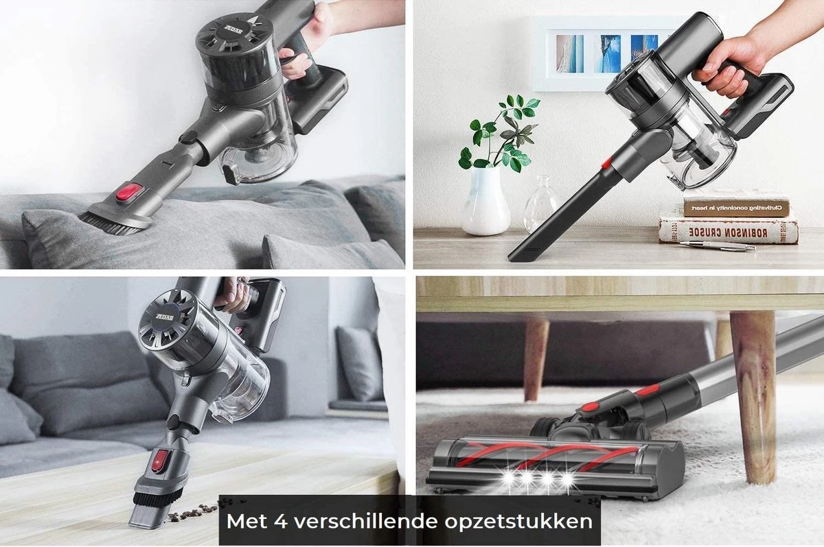 Even snel je woonkamer haarvrij maken met de steelstofzuiger van Zedar. Dankzij de turboborstel met LED-licht zuig je gemakkelijk en snel al het honden of kattenhaar op. Daarnaast kan je met behulp van de verschillende zuigmondstukken elk kiertje ontdoen van huisdieren haar.