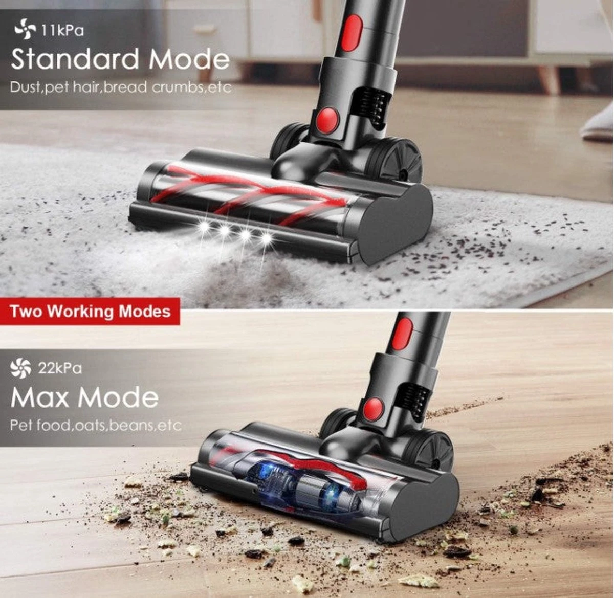 De zuigkracht is zo sterk als dat van een snoer snoerloze stofzuiger.