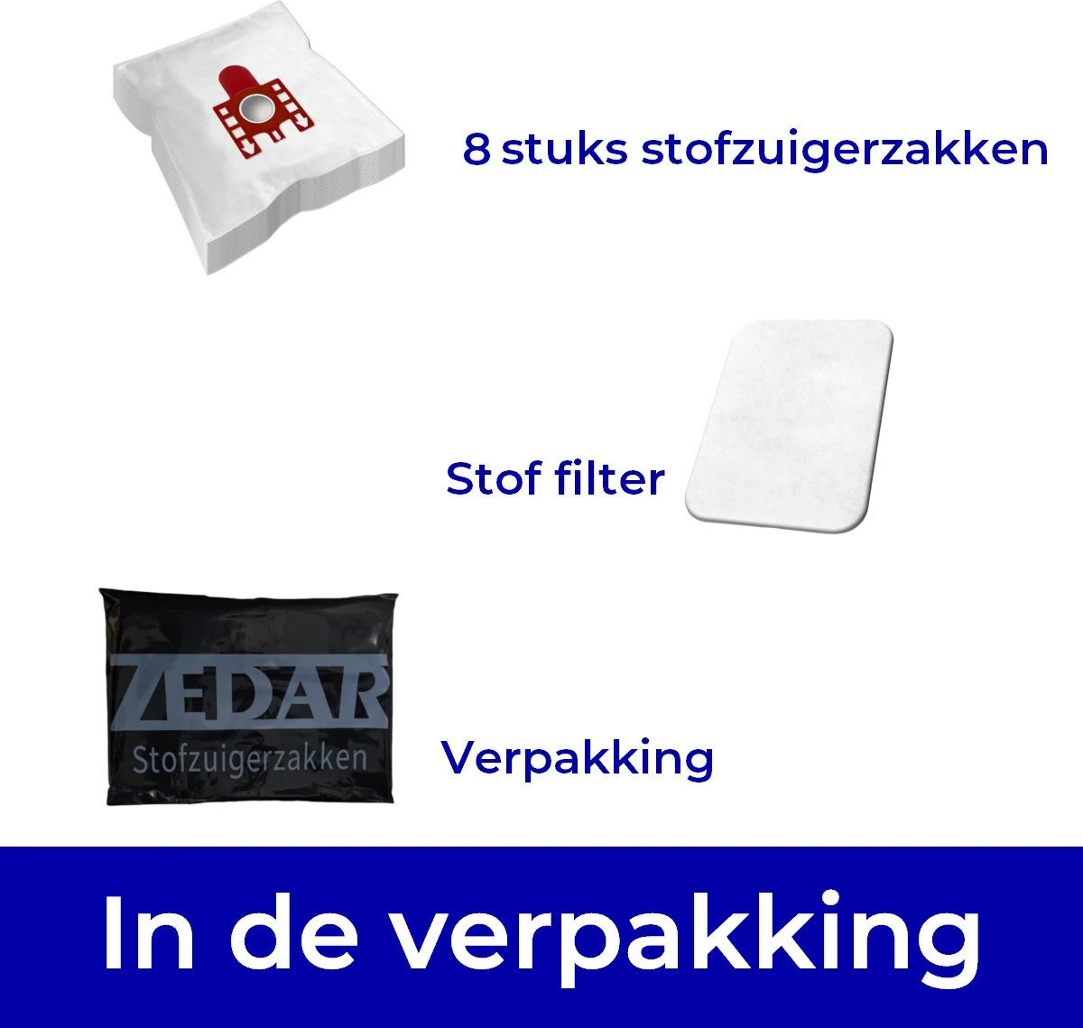 Om je stofzuiger in goede conditie te houden is het belangrijk om op tijd je stofzuigerzak te verwisselen. Doordat de stofzuigerzakken van ZEDAR® in een voordeelverpakking van 8 stuks zitten ben je altijd in staat om je stofzuigerzak tijdig te vervangen. De stofzakken beschikken over een lange levensduur en garandeert tot 99,99% tegengaan van uitstoot.