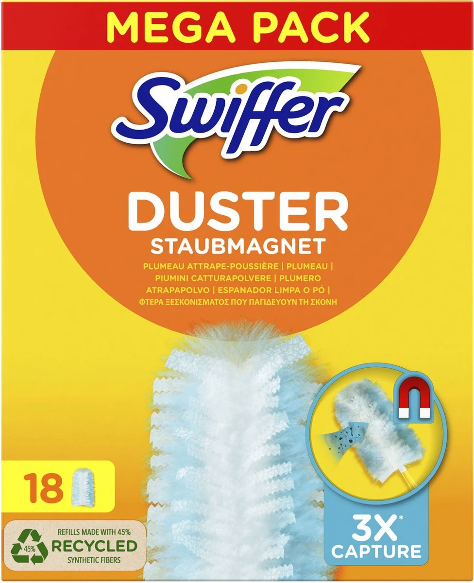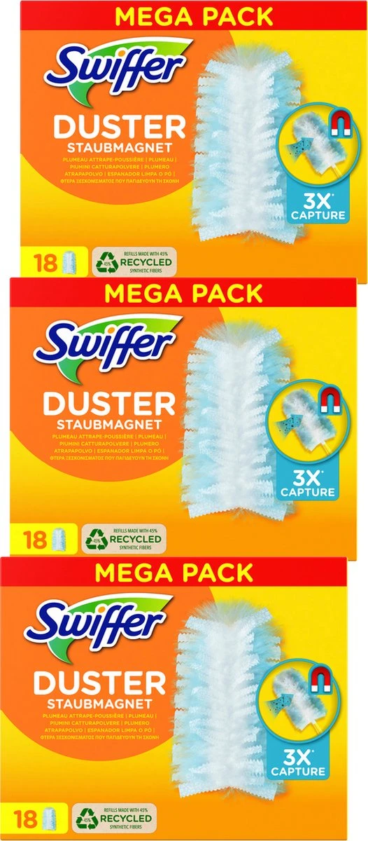 Neem maar afscheid van stof, vuil en haar. De Swiffer Dusters zijn het middel om stof, haar en allergenen van huisstofmijten, katten en honden op oppervlakken te vangen en vast te houden dankzij de duizenden licht gecoate pluizige vezels. De Swiffer stofdoekjes beschikken over unieke vezels die van vorm veranderen. Hierdoor kun je bij de moeilijkst bereikbare plekjes komen om van bijna elk oppervlak stof en haar te verwijderen zonder het in huis te verspreiden. Handige tips: Ze zijn vooral handig om het haar van je huisdieren, dat constant uitvalt, te verwijderen of als je last hebt van een stofallergie. Voor je het weet, ga je afstoffen nog leuk vinden: zo goed werkt het. Gebruik de Swiffer Duster navullingen met het Swiffer Duster handvat.