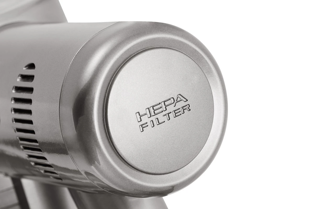 De stofzuiger is ontworpen zonder zak. Geen gedoe meer met het vervangen van stofzuigerzakken maar eenvoudig te legen met één druk op de knop. Met maar liefst een stofreservoir van 1 liter is de steelstofzuiger van Swiss Pro+ uniek in zijn klasse. Daarnaast wordt er gebruik gemaakt van een hoogwaardig Mirco- H10 HEPA+Multi-cyclonic dat pollen, allergenen en fijne stofdeeltjes filtert. Hierdoor kun je zeker zijn van het behoud van schone lucht in je huis. Het wasbare HEPA-filter is gemakkelijk te verwijderen en kun je gewoon reinigen onder de kraan.