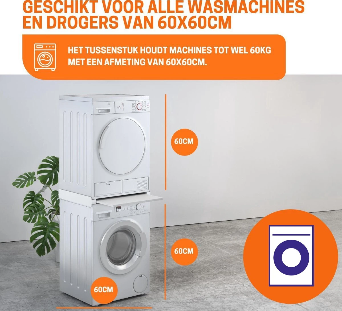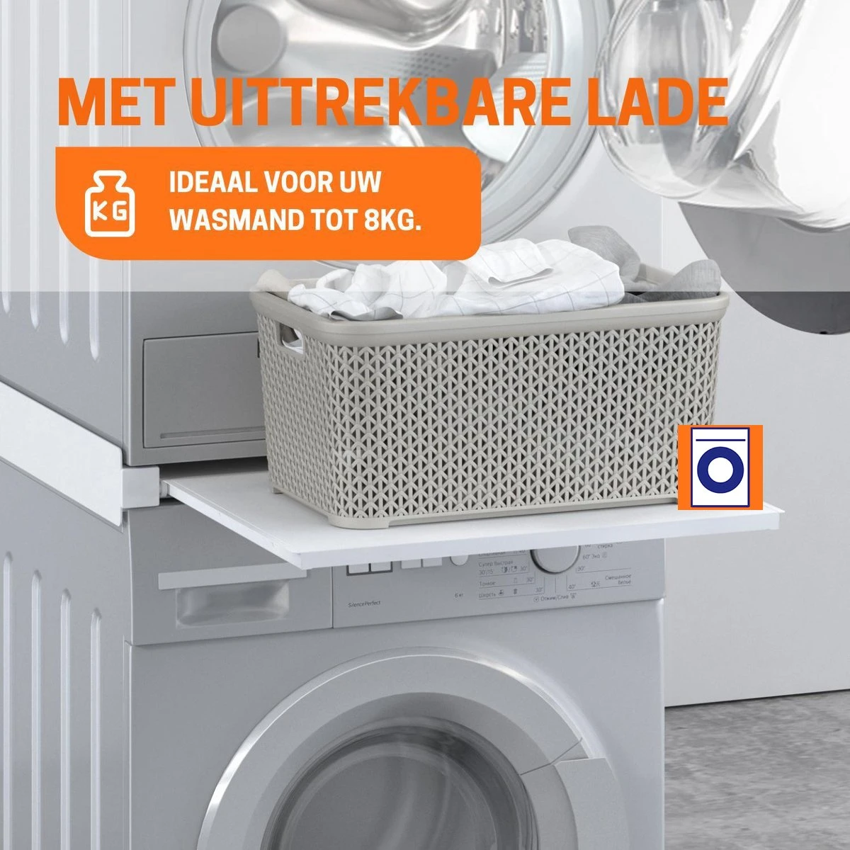 Dit tussenstuk is de ideale oplossing als uw wasmachine en droger op elkaar staan.