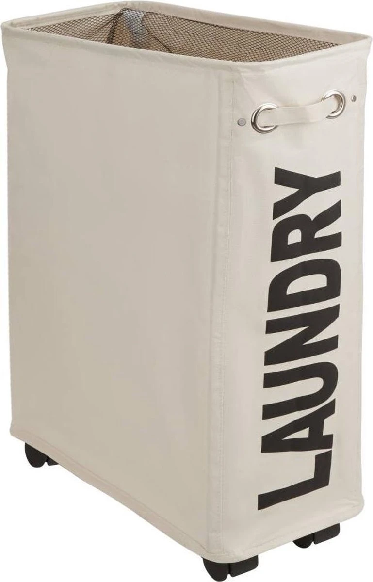 Deze compacte wasmand legt moderne accenten in uw badkamer. Het mooi gevormde design met de trendy tekst opwaardeert elke ruimte. Met haar smalle vorm kan ze ook in een kleine ruimte perfect gebruikt worden. Via de handgreep aan de voorzijde kan de lichtlopende mand met zijn vier wielen moeiteloos gesleept worden. Als ze niet gebruikt wordt, kan de korf tot een handig formaat samengeplooid worden. Tover ongebruikte niches en hoeken om tot een praktische opbergruimte met de stabiele wasmand van TecTake.