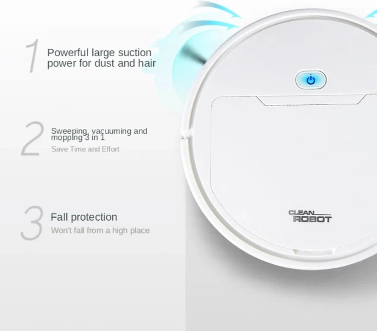 11. Functies: slimme start met één knop flexibel compact drie-in-één vegen zuig- en nat sleepwerk.