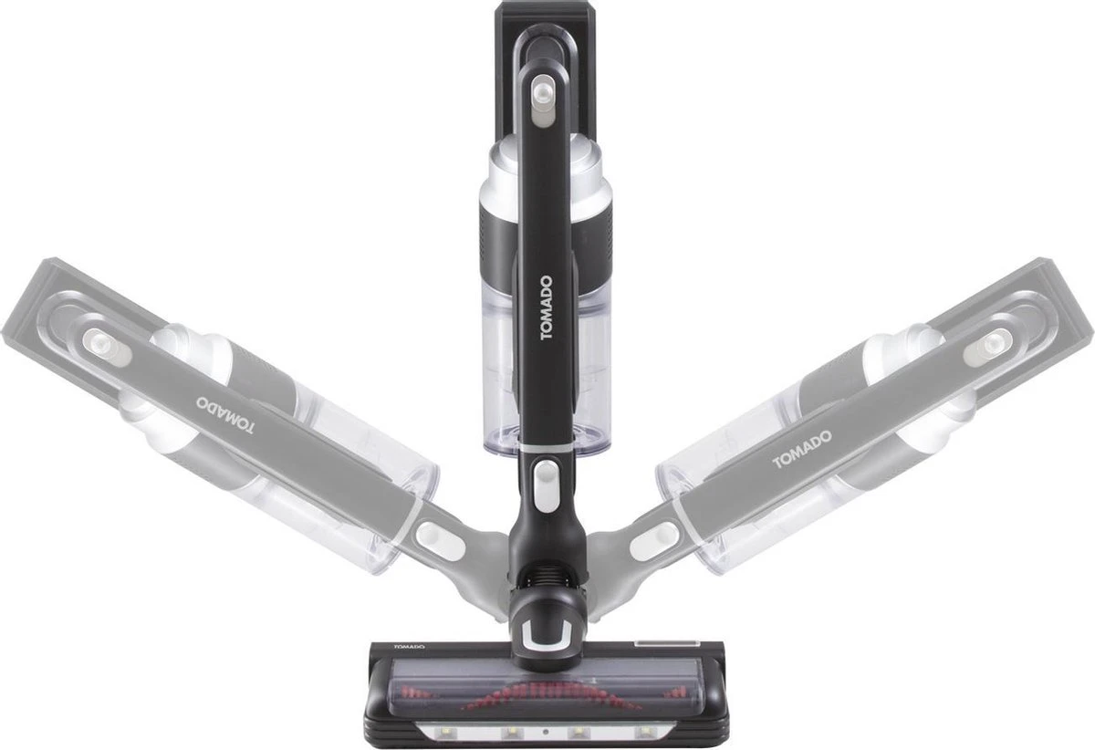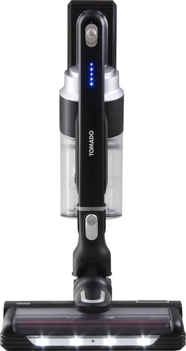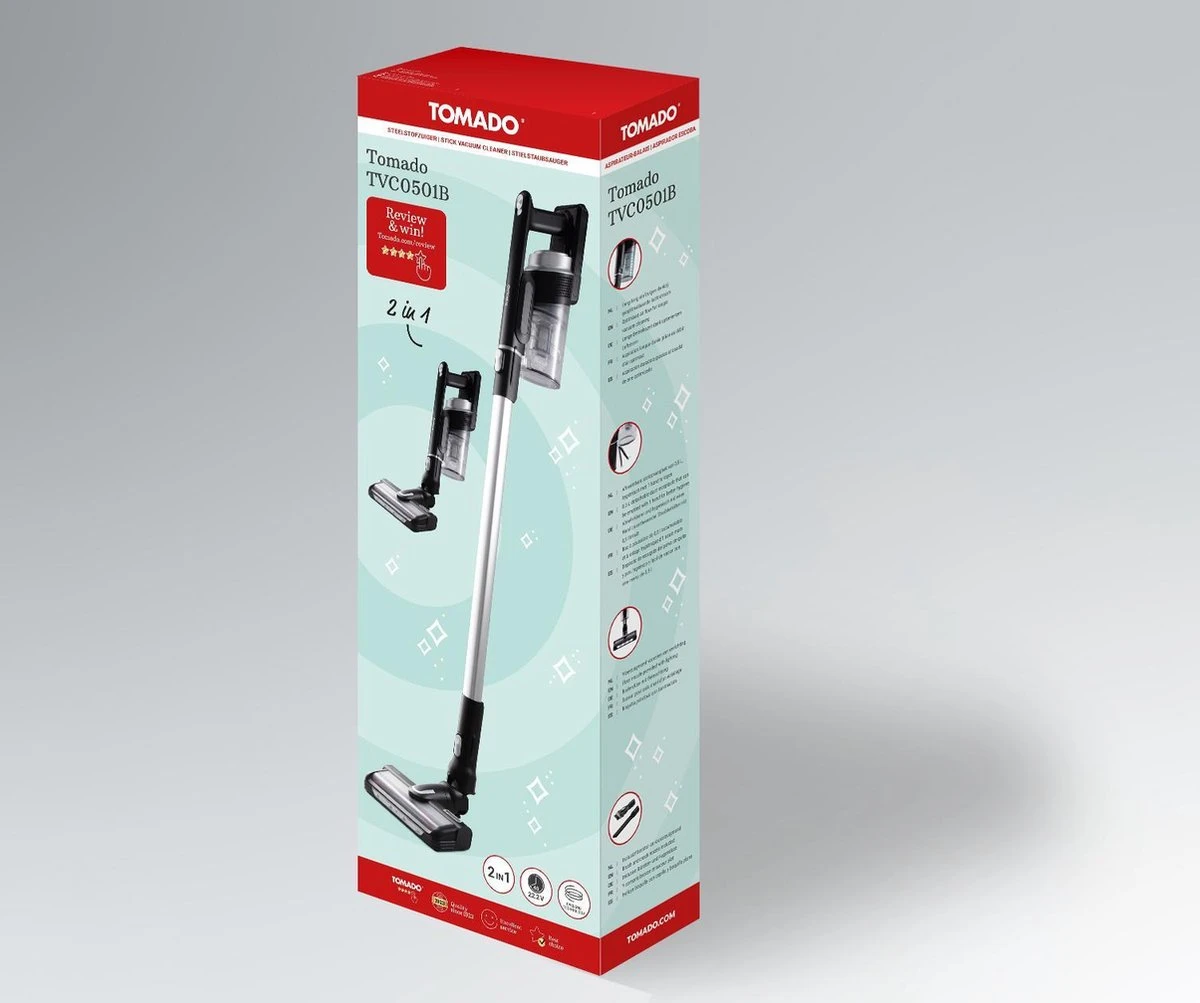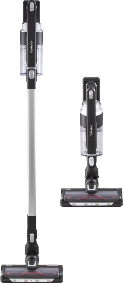 Je vloeren zijn snel stofvrij met deze flexibele 2 in 1 steelstofzuiger TVC0501B van Tomado. Deze snoerloze cycloonstofzuiger TVC0501B is ook te gebruiken als kruimelzuiger en heeft een optimale zuigkracht. De afneembare stofopvangbak van 0,5 liter is hygiënisch met 1 hand te legen. De accuduur weergave is af te lezen met 5 LED indicatielampjes en dankzij de 22,2 Volt accu kun je maar liefst tot 40 minuten stofzuigen of tot 20 minuten in de turbo stand. In slechts 5,5 uur is de accu weer helemaal opgeladen. De steelstofzuiger is geschikt voor harde vloeren en tapijt en dankzij de handige LED verlichting op de vloerzuigmond blijft er geen vuiltje meer liggen!