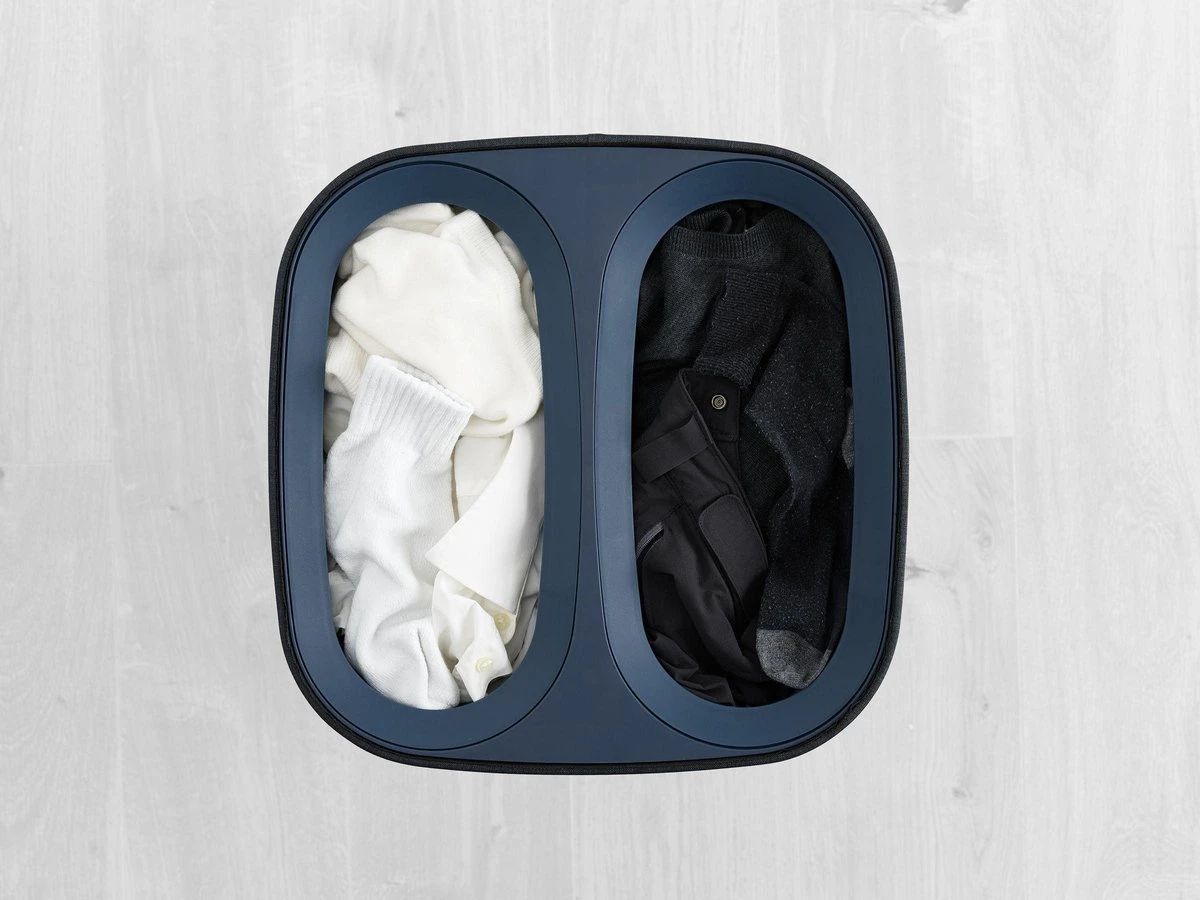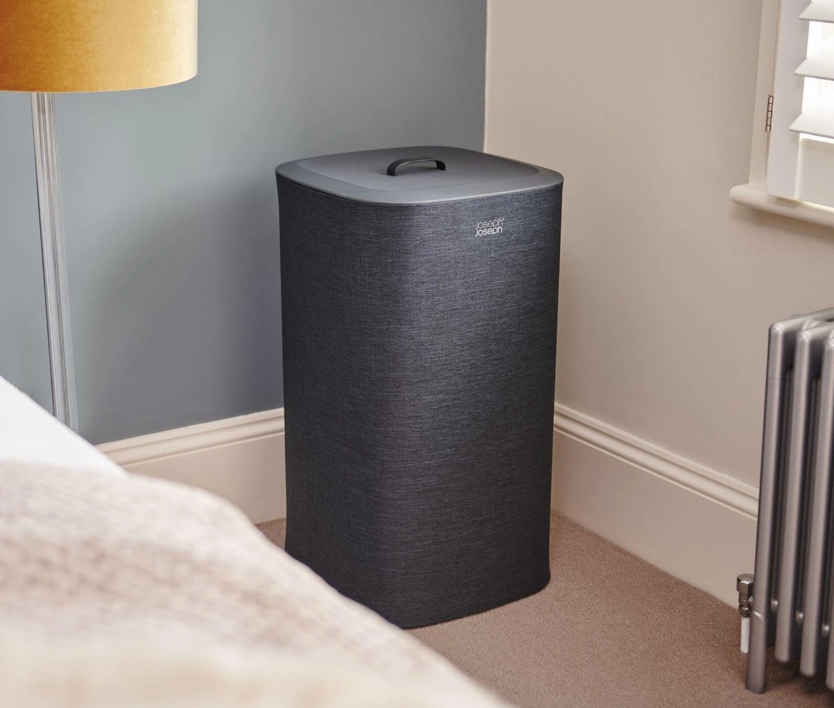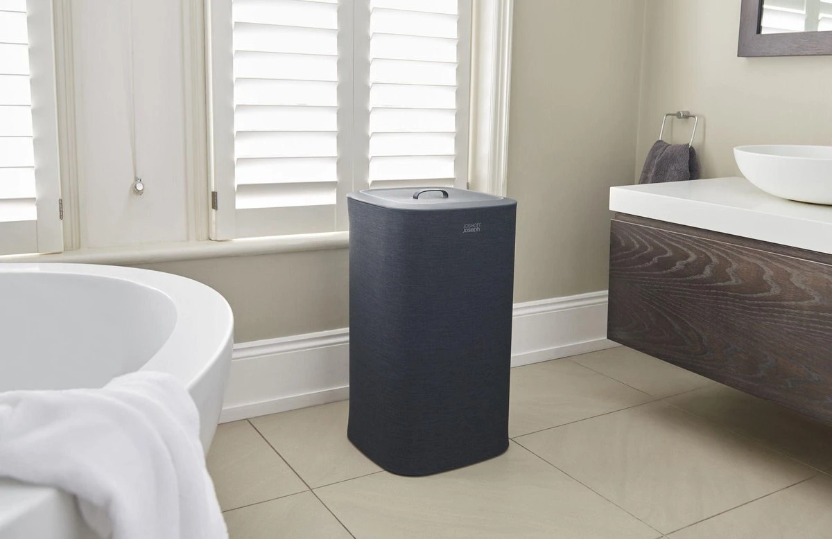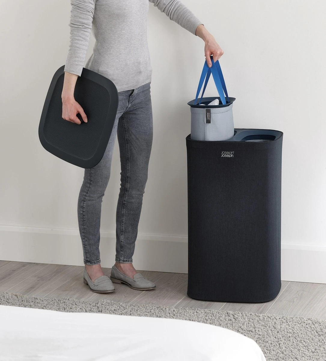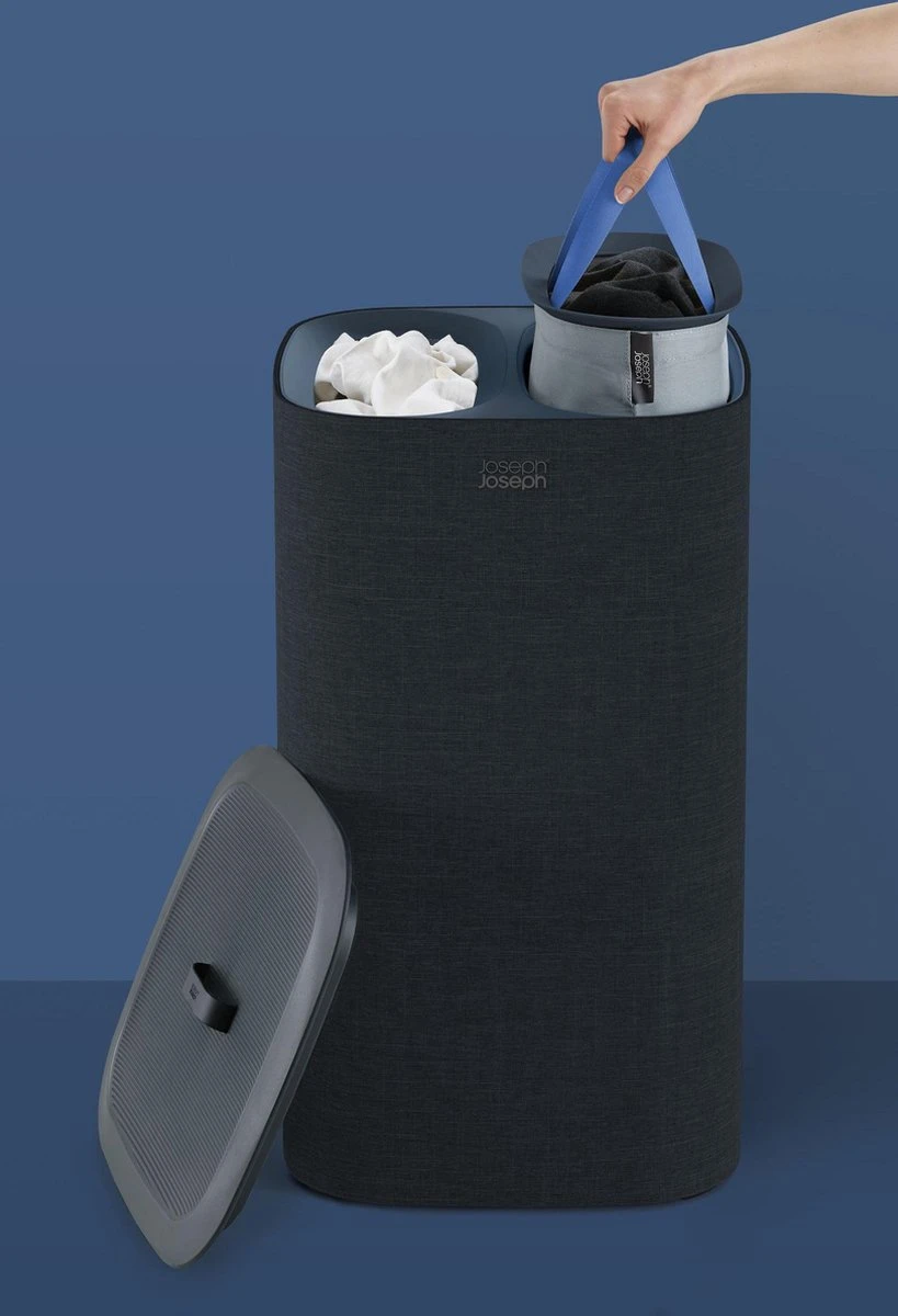 Het sorteren van wasgoed is nog nooit zo makkelijk geweest met deze slimme Tota wasmand van Joseph Joseph. Dankzij de praktische snufjes is de wasdag voortaan een minder grote klus. De wasmand is voorzien van een deksel waaronder je 2 verschillende stoffen tassen vind welke gebruikt kunnen worden om licht en donker wasgoed te kunnen scheiden. Iedere tas is voorzien van handvatten waardoor je hem makkelijk vanuit de wasmand naar de wasmachine kunt tillen. De lus aan de onderzijde helpt je vervolgens om de tas makkelijk te legen. Hierna kan de tas eenvoudig, zonder lussen of knopen, in de wasmand worden teruggeplaatst dankzij de zelf lokaliserende rand zodat hij perfect op zijn plaats valt. Het stijlvolle ontwerp maakt deze wasmand ideaal om te combineren met andere stijlen in huis waardoor hij niet misstaat in zowel de badkamer, slaapkamer of het washok. Deze wasmand heeft een inhoud van 60 Liter en is ook verkrijgbaar in een 90 Liter variant. Hij wordt plat geleverd inclusief montage instructies.