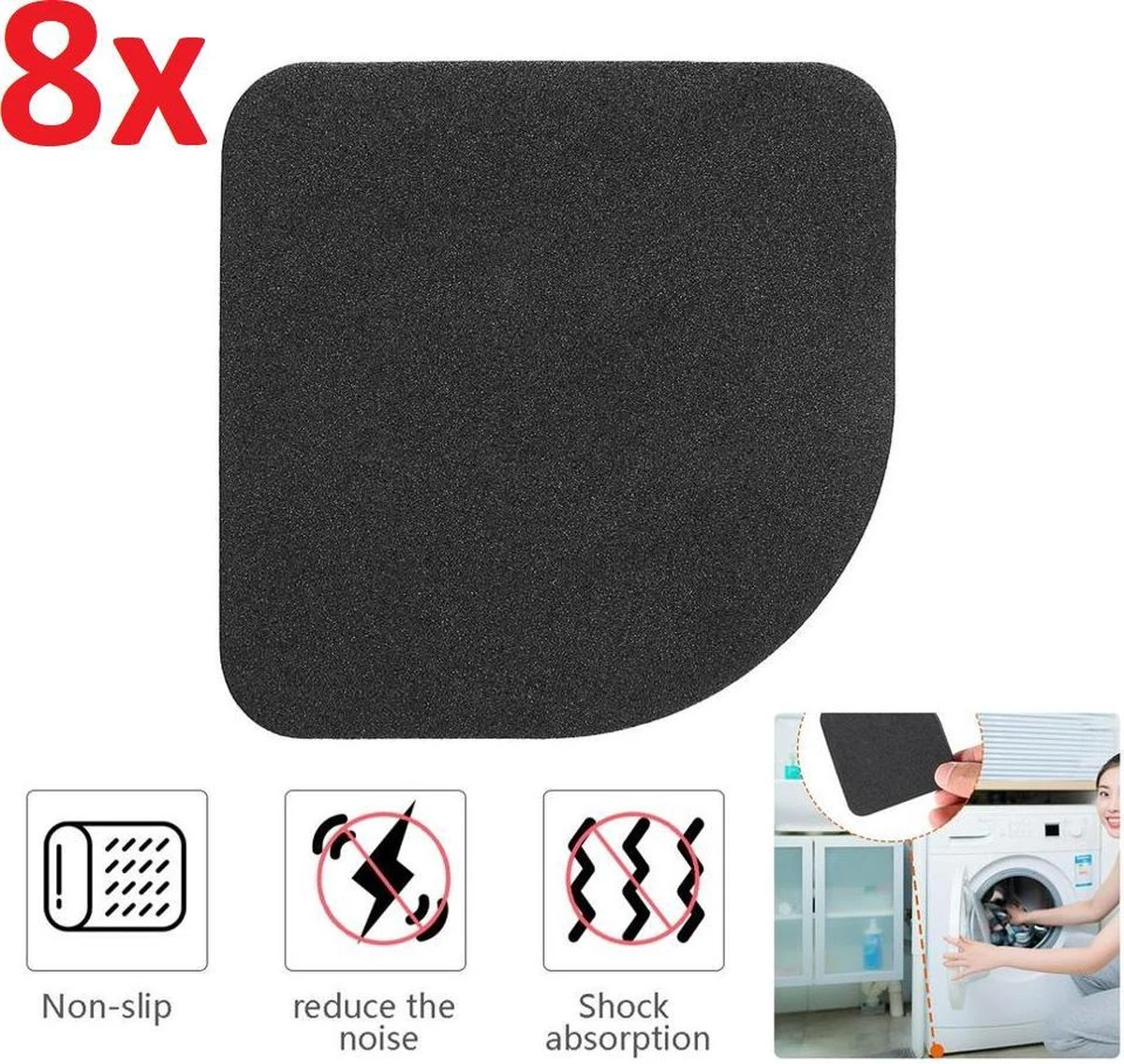 Deze trillingsdempers kunnen worden gebruikt voor demping van trillen en geluid en het tegengaan van corrosie door een natte ondergrond. Deze rubberen dempers zijn uitermate geschikt van toepassing voor je wasmachine en vaatmachine, maar kunnen ook gebruikt worden voor meubels of uw ijskast. Voor een optimale werking plaats je altijd eerst je machine waterpas.