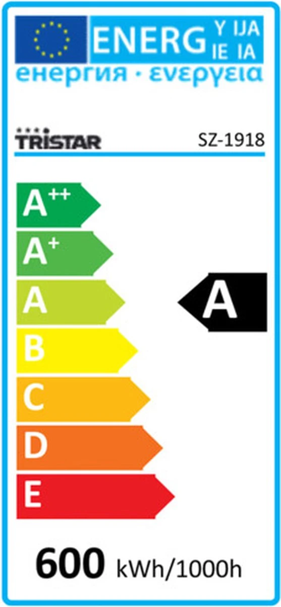 De Tristar SZ-1918 wordt standaard geleverd met: