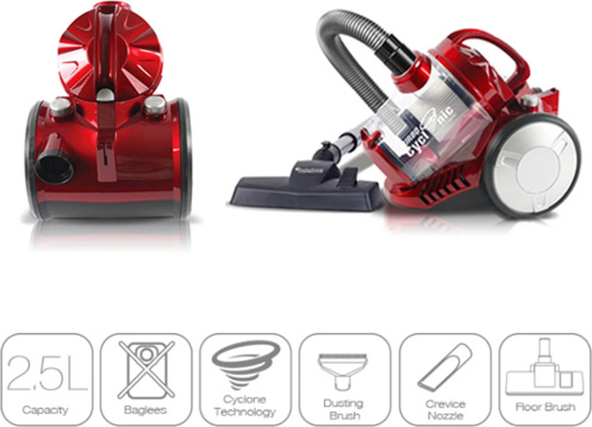 De cycloontechniek, waarvan de stofzuiger zonder zak is voorzien, zorgt ervoor dat de lucht in het reservoir rondcirculeert en het opgenomen stof en vuil tegen de randen wordt gedrukt en naar beneden zakt. Hierdoor blijft de zuigkracht continu sterk is en er geen stofzuigerzak meer nodig is.
