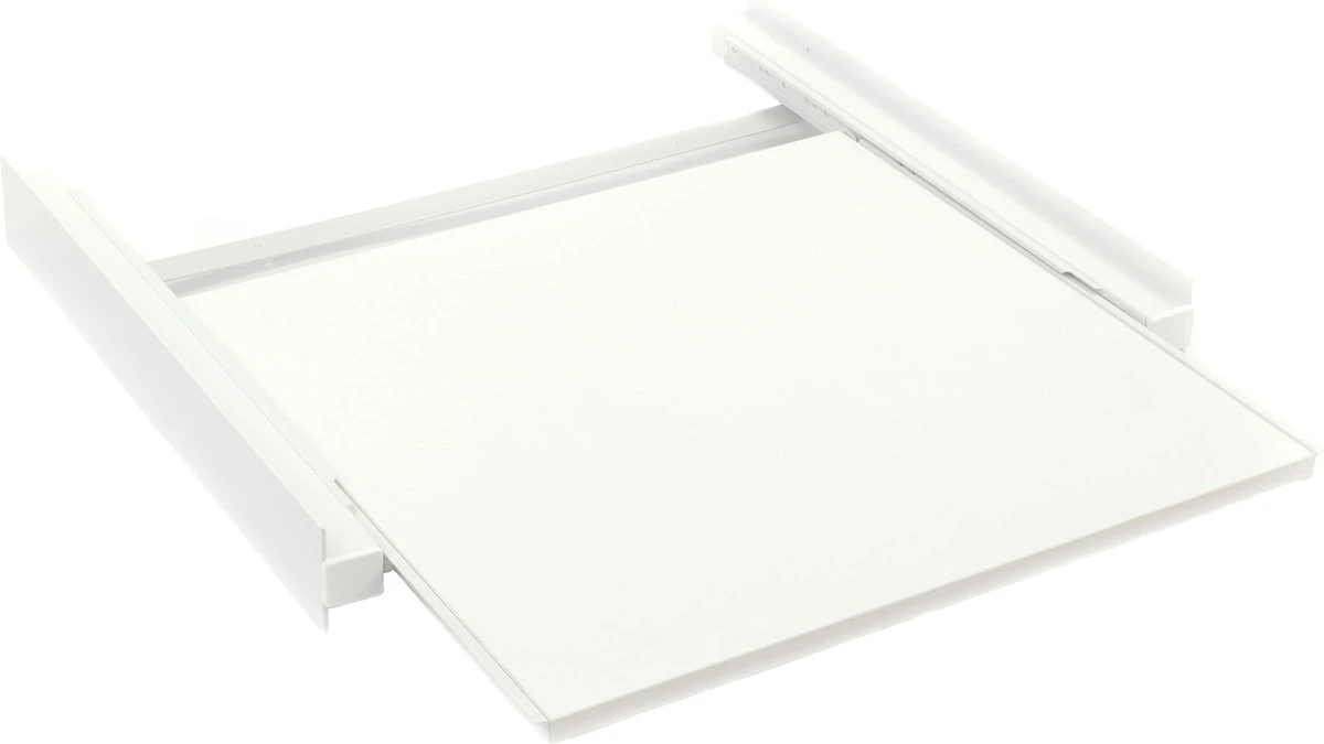 Dit tussenstuk is de ideale oplossing als uw wasmachine en droger op elkaar gestapeld staan. Het tussenstuk tussen de wasmachine en droger zorgt ervoor dat deze stevig op elkaar staan. Er zit een werkblad in verwerkt wat kan uitschuiven, zo kunt u hier een wasmand neerzetten of de was opvouwen. Dit werkblad maakt wassen gemakkelijk en ergonomisch. Niet meer bukken om wasgoed uit de droger in de wasmand te leggen of direct opvouwen en in de wasmand leggen.