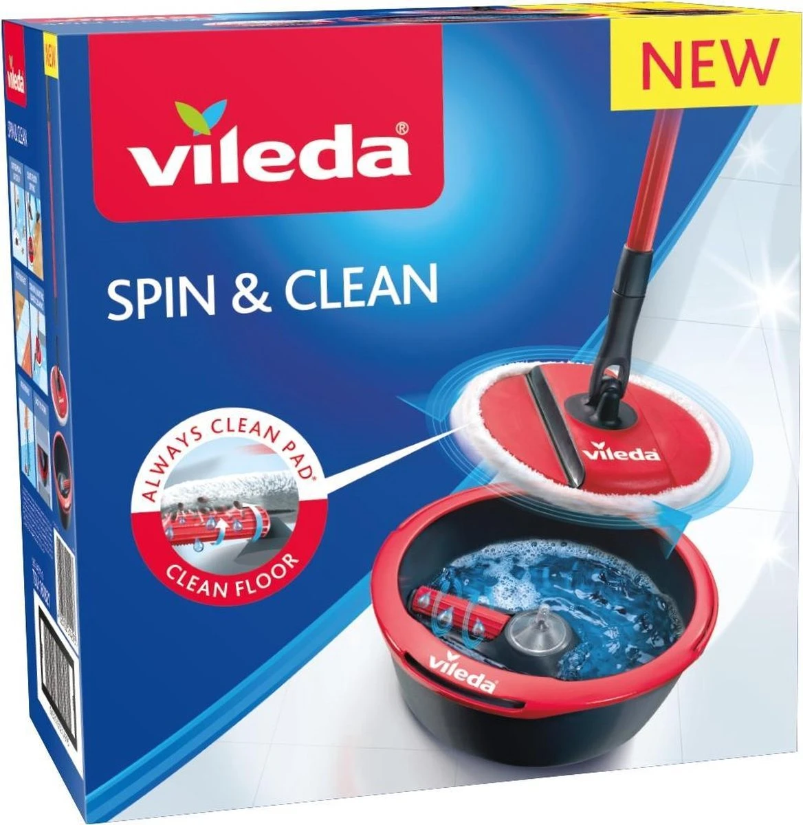 Een steeds propere mop voor een nog schonere vloer zonder zich te moeten bukken. Vileda Spin & Clean stelt voor: een innoverende emmer met een reinigingsrol, uniek in zijn soort. Tijdens het spoelen wordt al het vuil dat aan de mop kleeft, verwijderd.Dankzij zijn wendbare kop reinigt de mop tot in de hoeken en zelfs de plinten.Handig centrigugesyteem dat in werking wordt gezet via de steel.Innoverende ronde emmer: unieke reinigingsrol om al het vuil en de haren die aan de pad kleven, te verwijderen tijdens het spoelen.Wendbare kop om in een handomdraai de plinten schoon te maken.