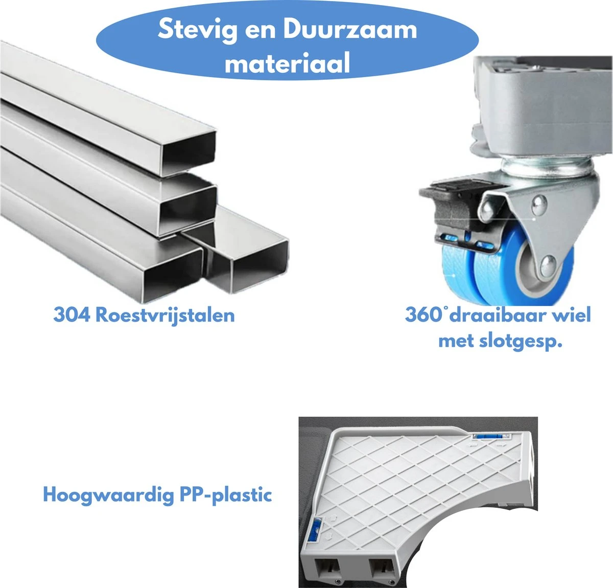 Het wasmachine verhoger is gemaakt van Roestvrij staal en hoogwaardig PP-plastic, waardoor de wasmachine verhoger beschermd wordt tegen verrotting en/of veroudering. Het maximaal belastbaar gewicht is 300 kg. De verhoger is dus niet alleen geschikt voor wasmachines, maar ook voor koelkasten, vaatwassers, wasdrogers of de kasten.