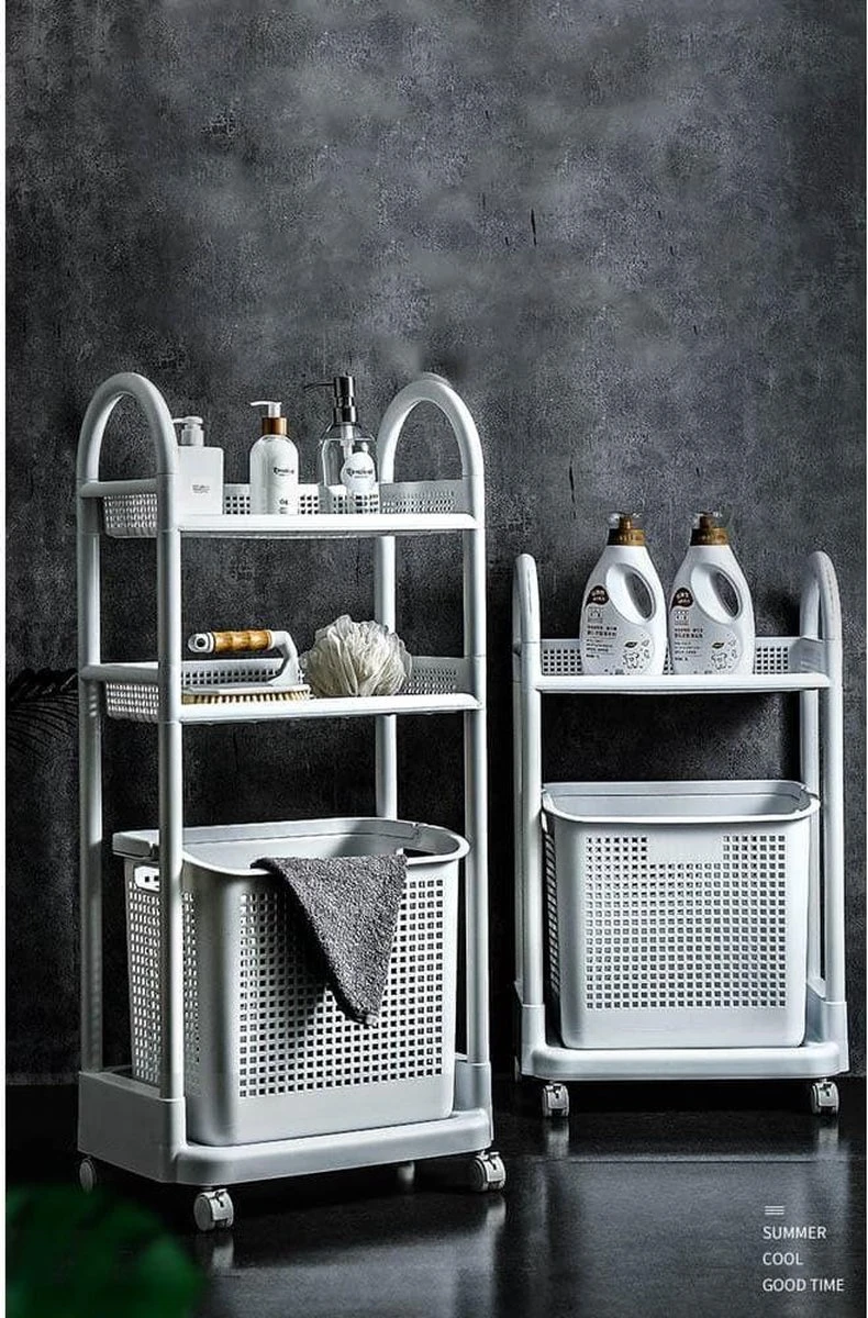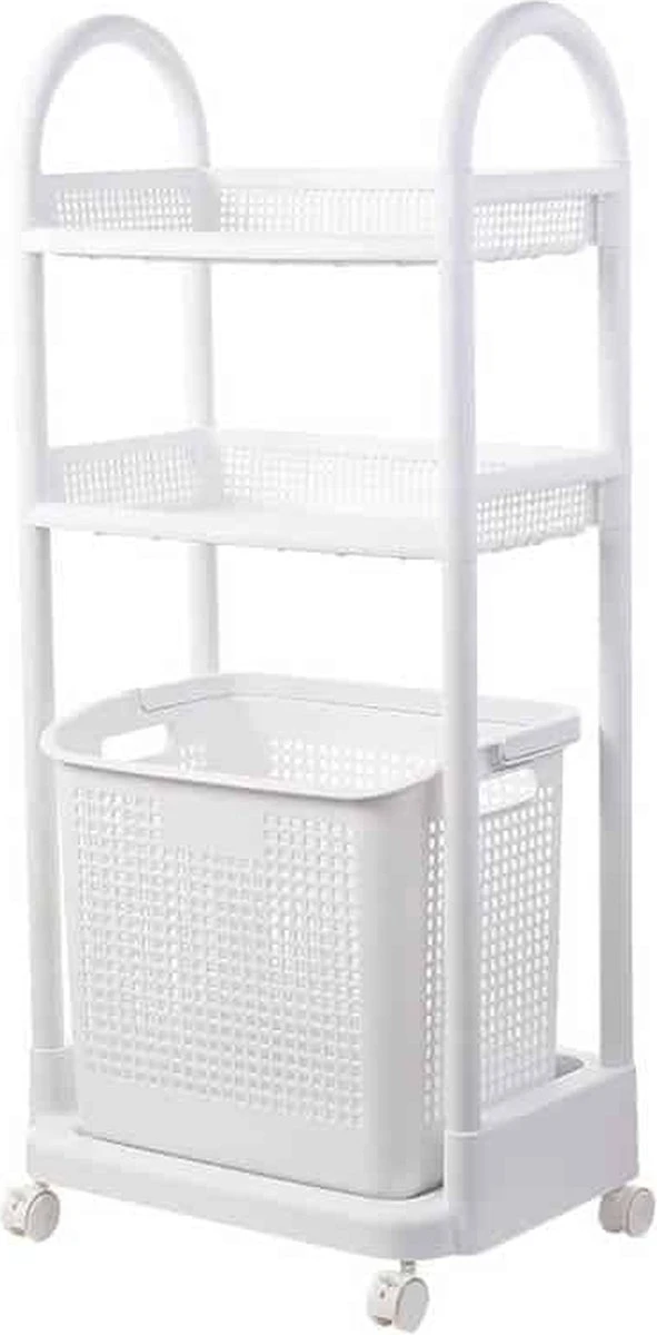 De wasmand bestaat uit drie lagen en is gemakkelijk afneembaar met een doekje. Daarnaast heeft de badkamer organizer hengsels waardoor het verplaatsen van de wasmand naar de wasmachine simpel is en dus geen moeite kost. Ook bevat de organizer wieltjes en daardoor is het snel en makkelijk te verplaatsen.