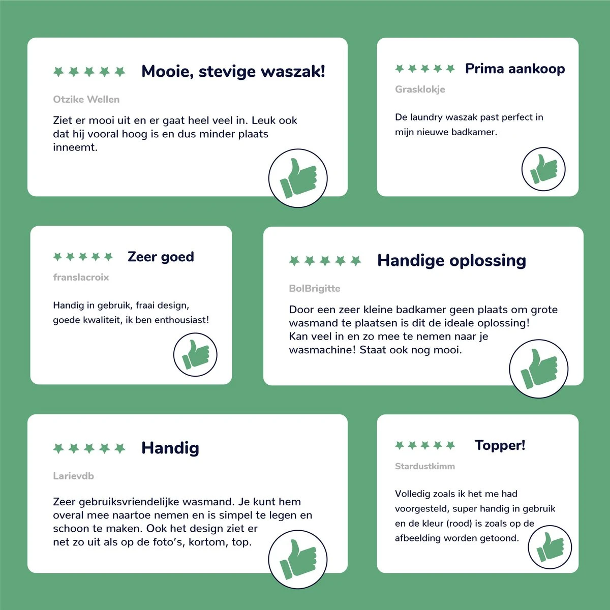 Het design van deze wasmand is niet alleen mooi, maar ook praktisch. De moderne look geeft een opvallende boost aan elke ruimte in huis, of je de waszak nu in de badkamer, slaapkamer of studentenkamer plaatst. Bovendien kun je verschillende kleuren van de wasmand mixen en matchen. Gebruik bijvoorbeeld een zwarte wasmand voor je zwarte was en een gekleurde wasmand voor je gekleurde was.