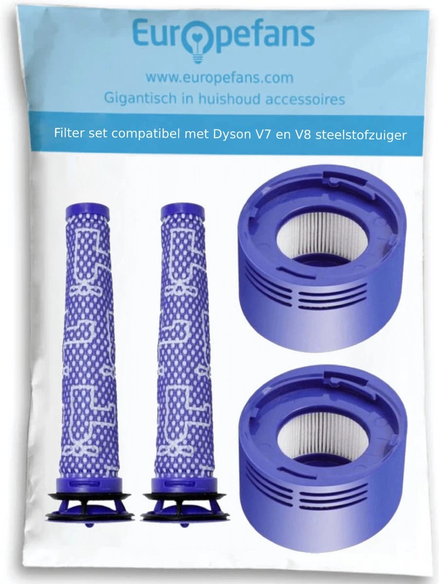 Geschikt voor alle types Dyson V7 en V8 steelstofzuigers. Het advies is om elke 2-3 maanden de filters te vervangen. In de tussentijd kan de pre filter worden gereinigd onder de kraan en natuurlijk gedroogd binnen 24 uur. De HEPA Filter kan schoongemaakt worden met een eenvoudig borsteltje om vuil tussen het filter uit te halen.